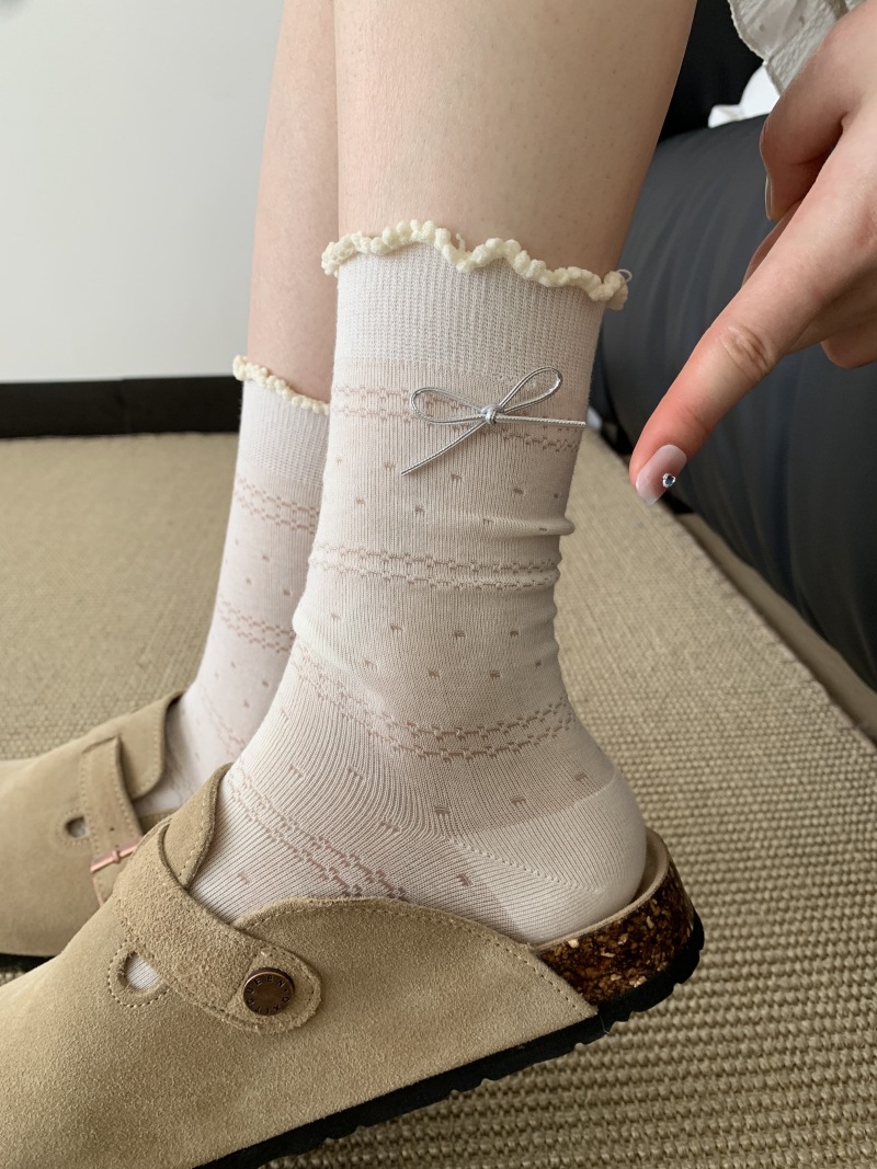 纯棉袜子女夏季潮袜JK袜可爱百搭洛丽塔蝴蝶结中筒袜无骨女袜包邮