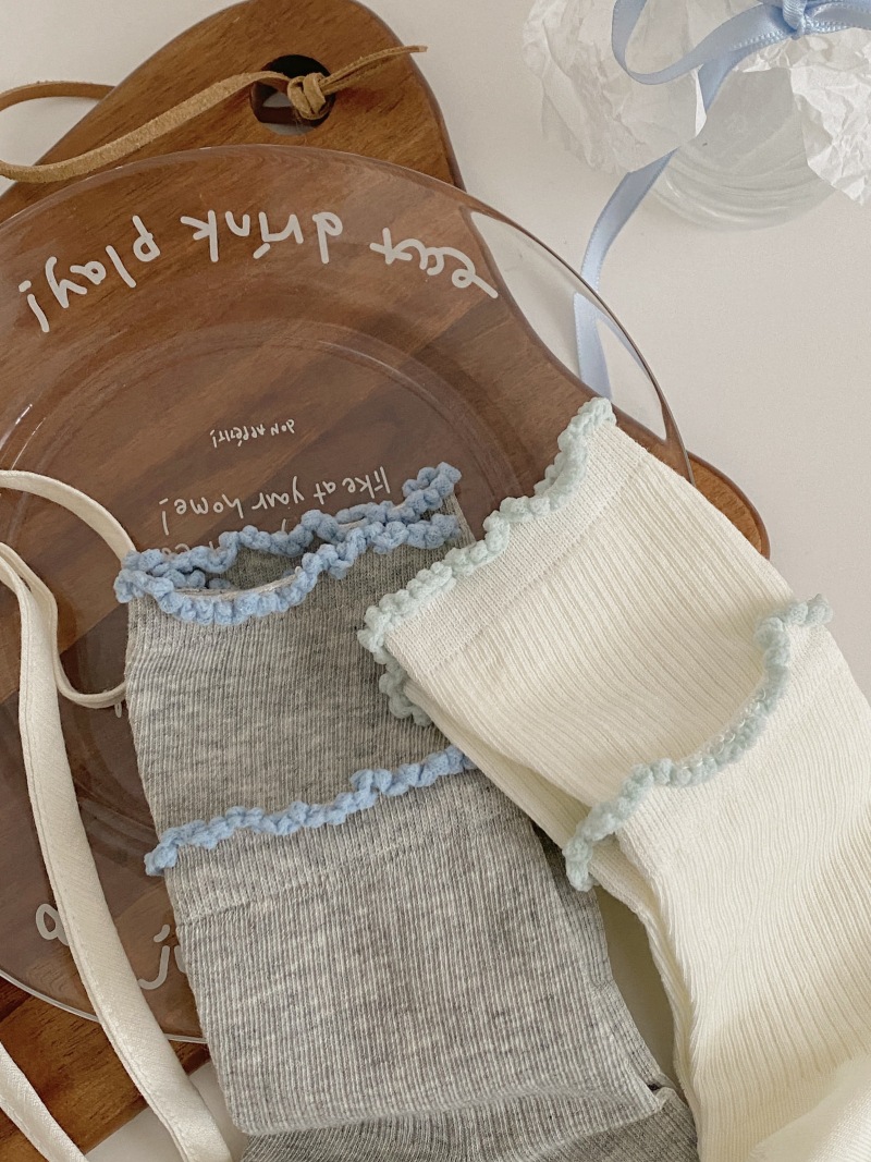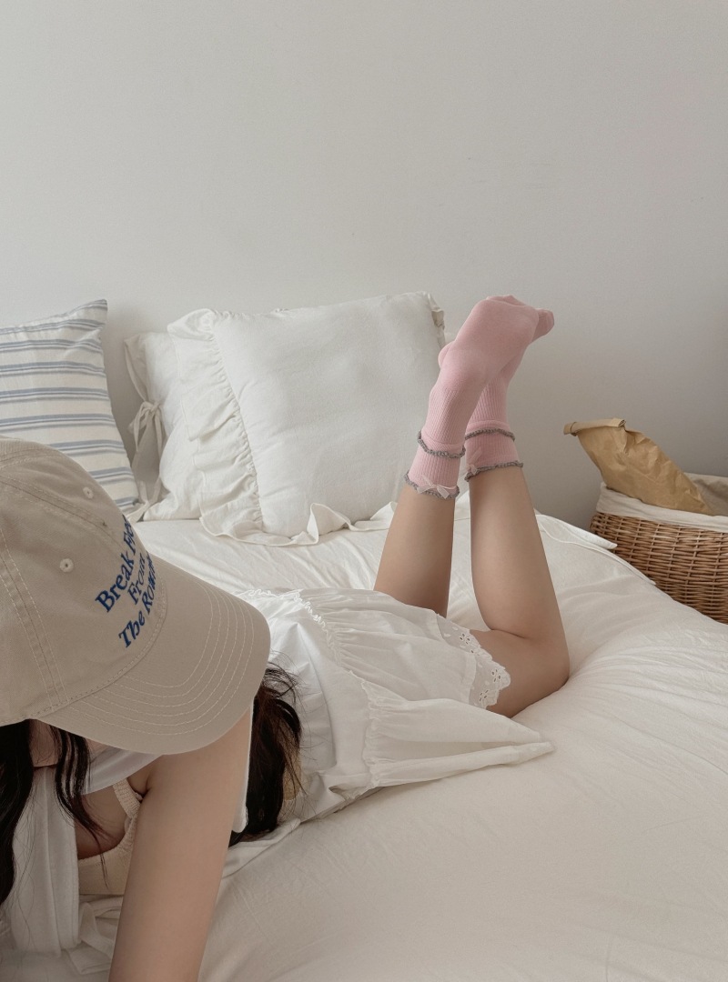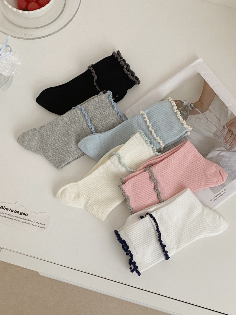 新款纯棉袜子女中筒袜甜美花边蝴蝶结无骨女士JK袜防臭女袜堆堆袜