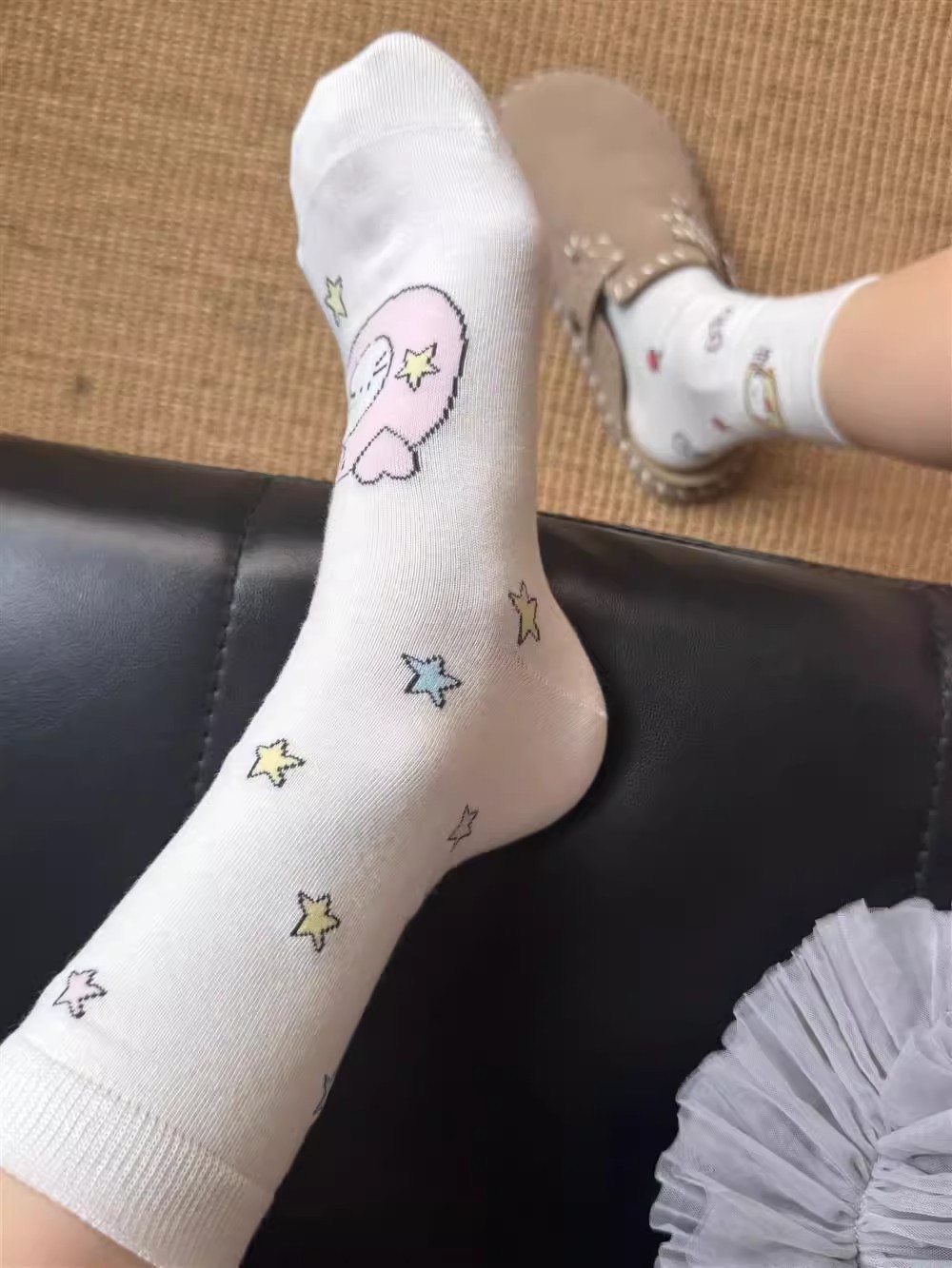 Kitty猫袜子女春夏韩版百搭白色中筒袜ins潮日系卡通学生长袜批发