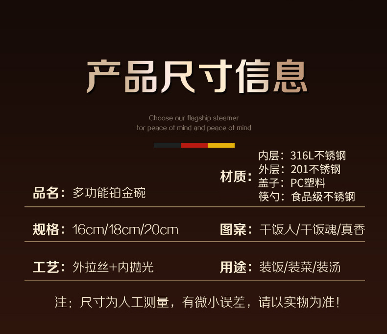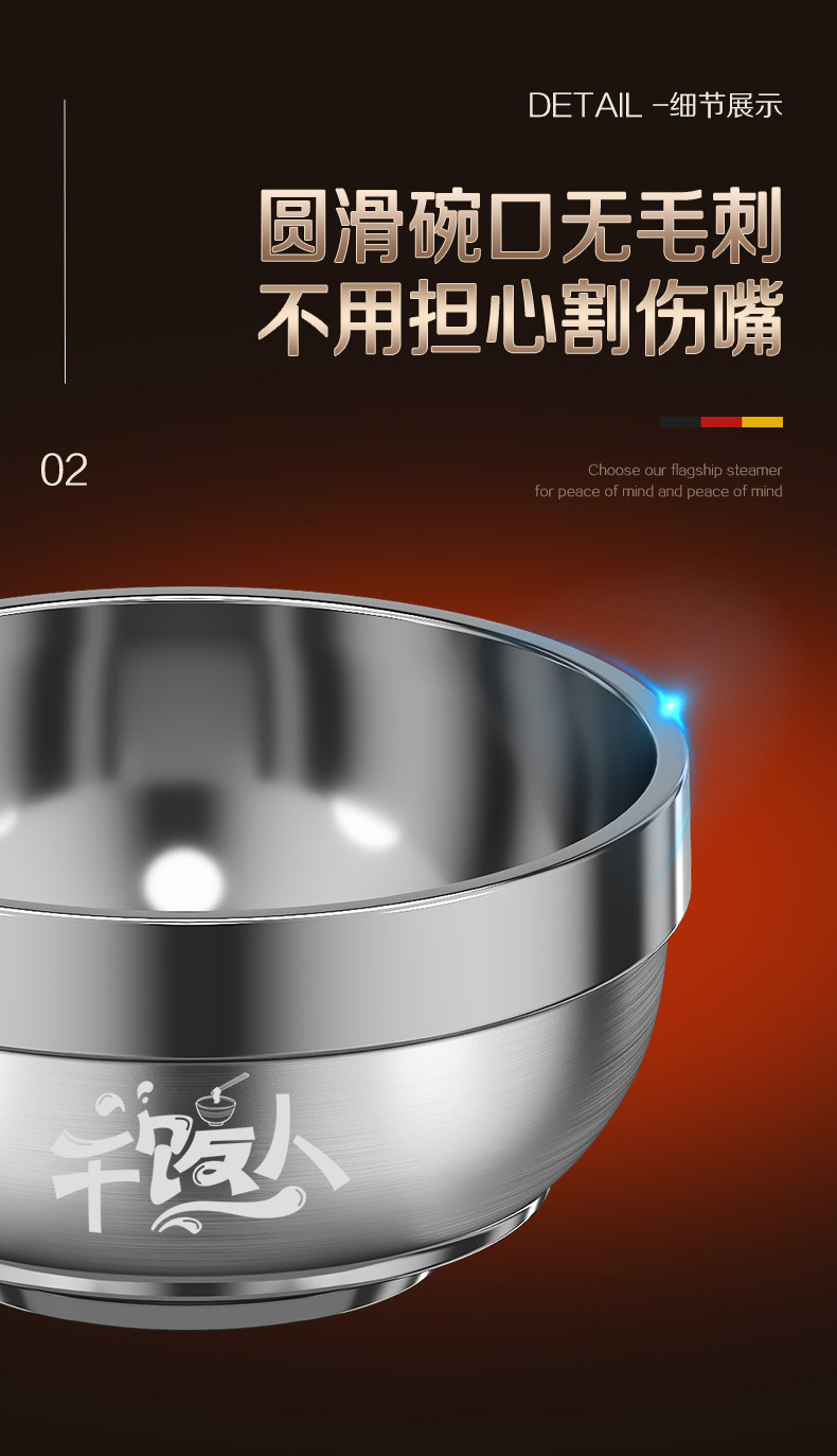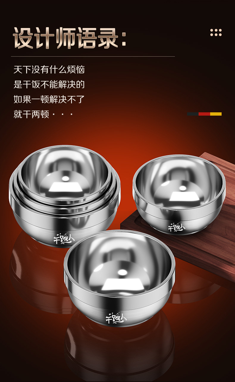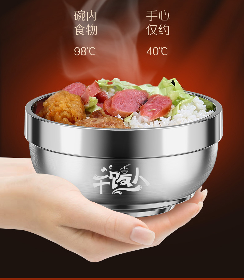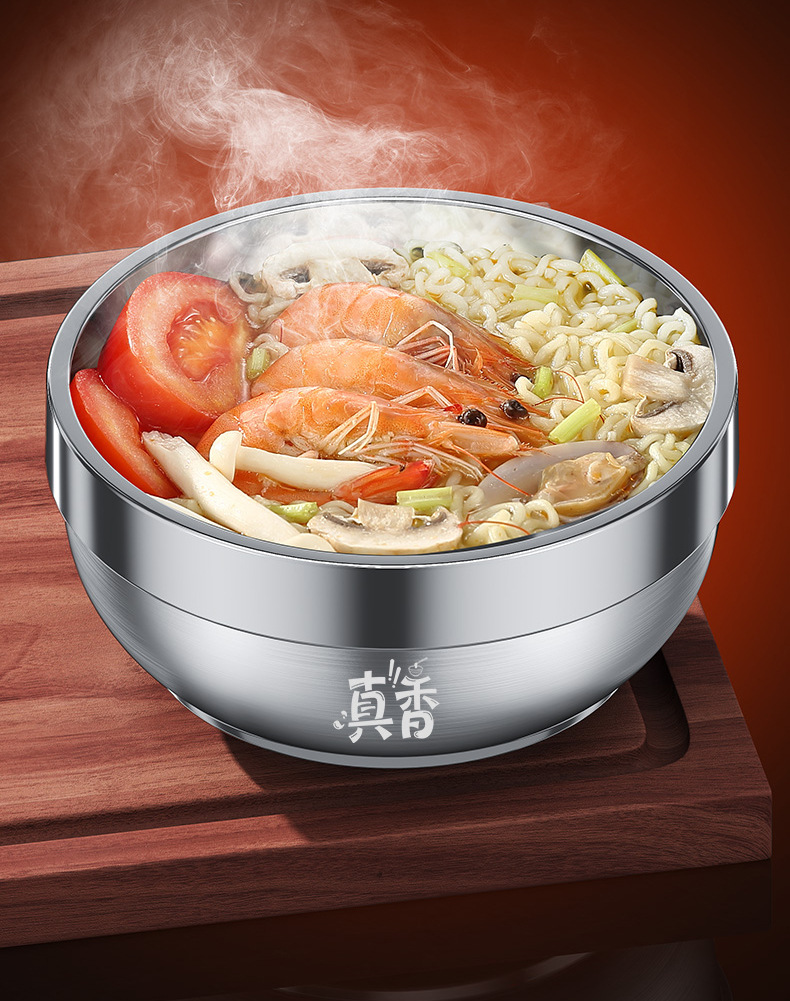 工厂直销食品级316L不锈钢饭碗双层家用儿童防烫防摔泡面大铁汤碗
