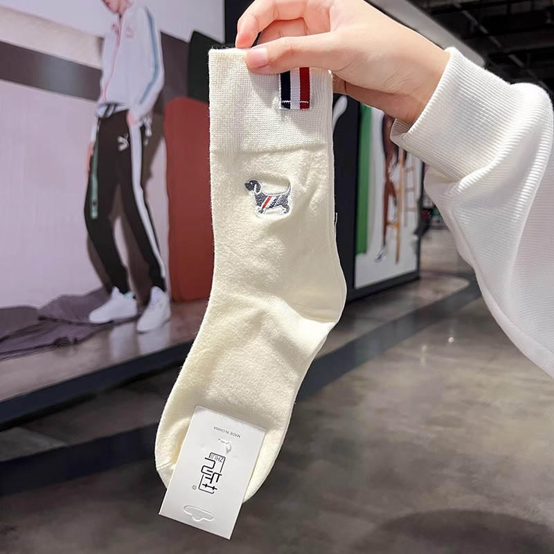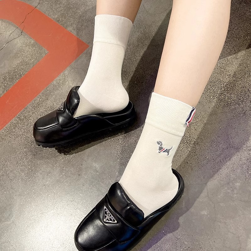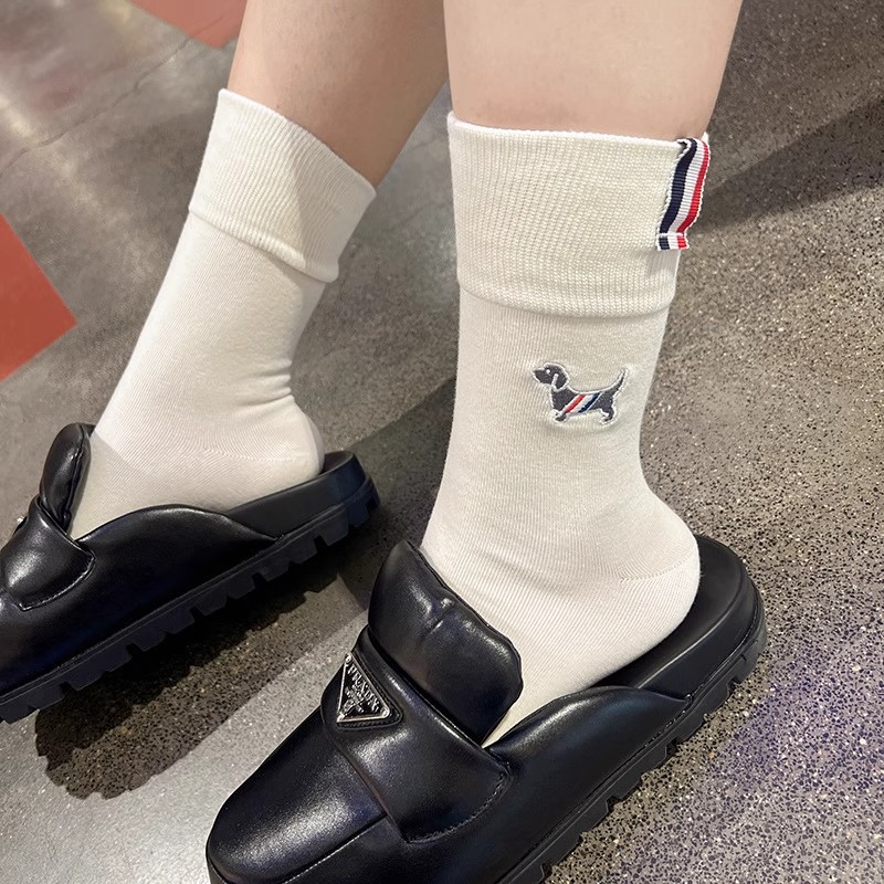 袜子女小众简约刺绣布标情侣袜基础款黑白可爱小狗布标英伦中筒袜