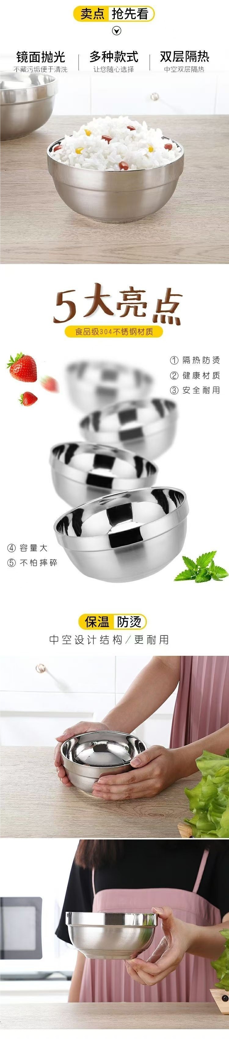 双层304不锈钢隔热防烫摔学校食堂幼儿园家用成人儿童泡面汤饭碗
