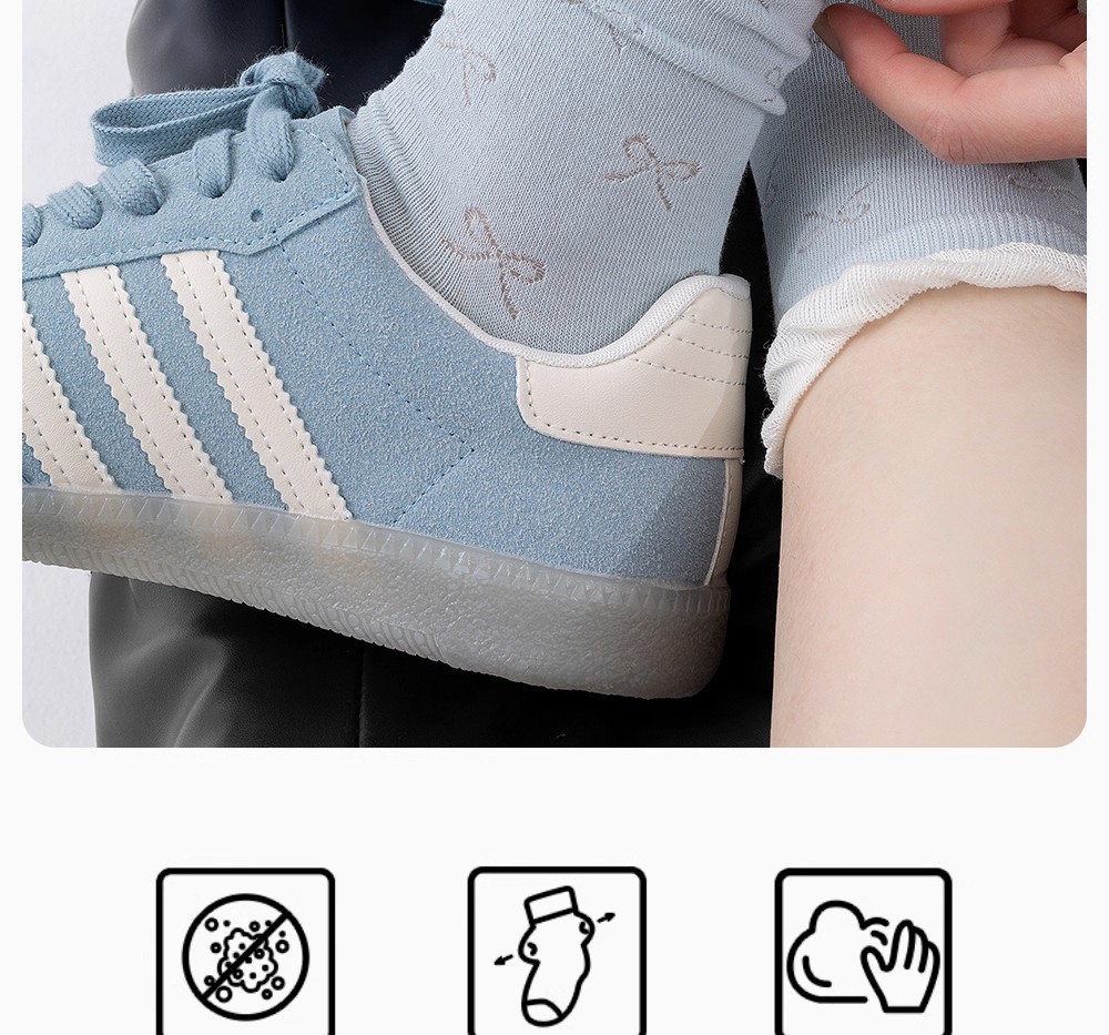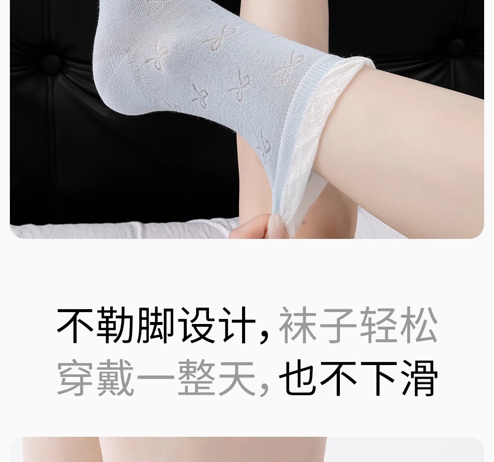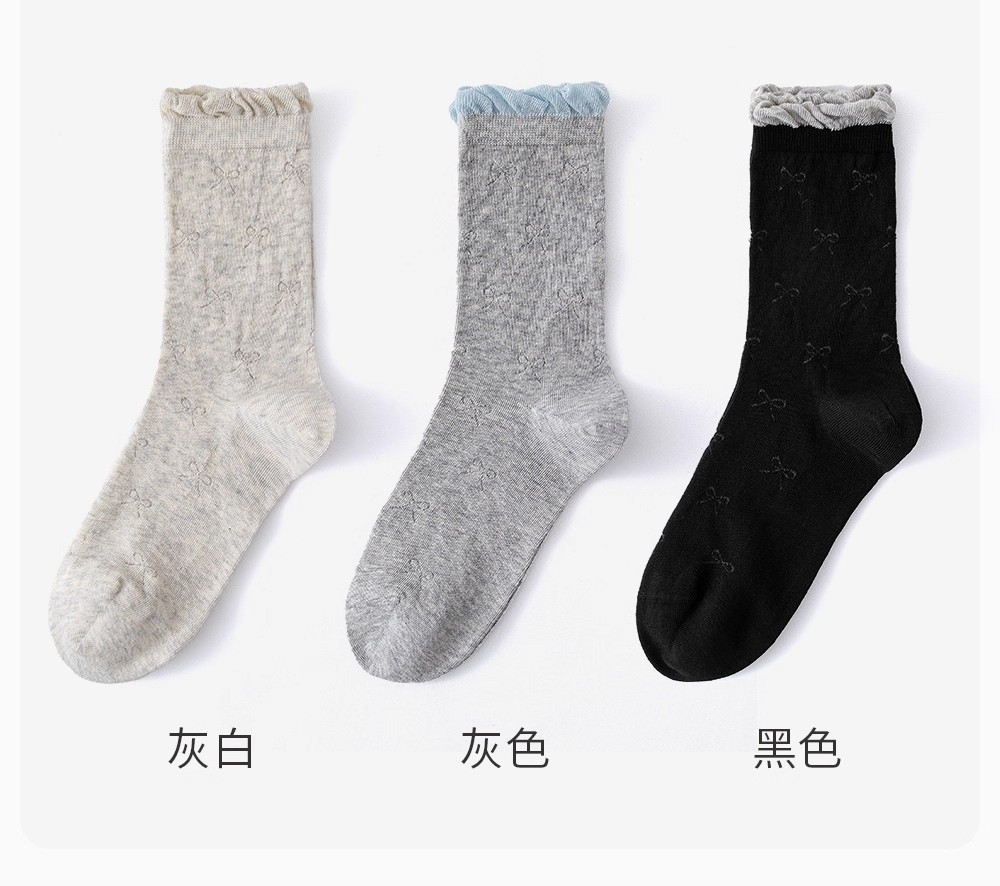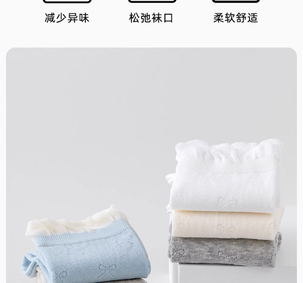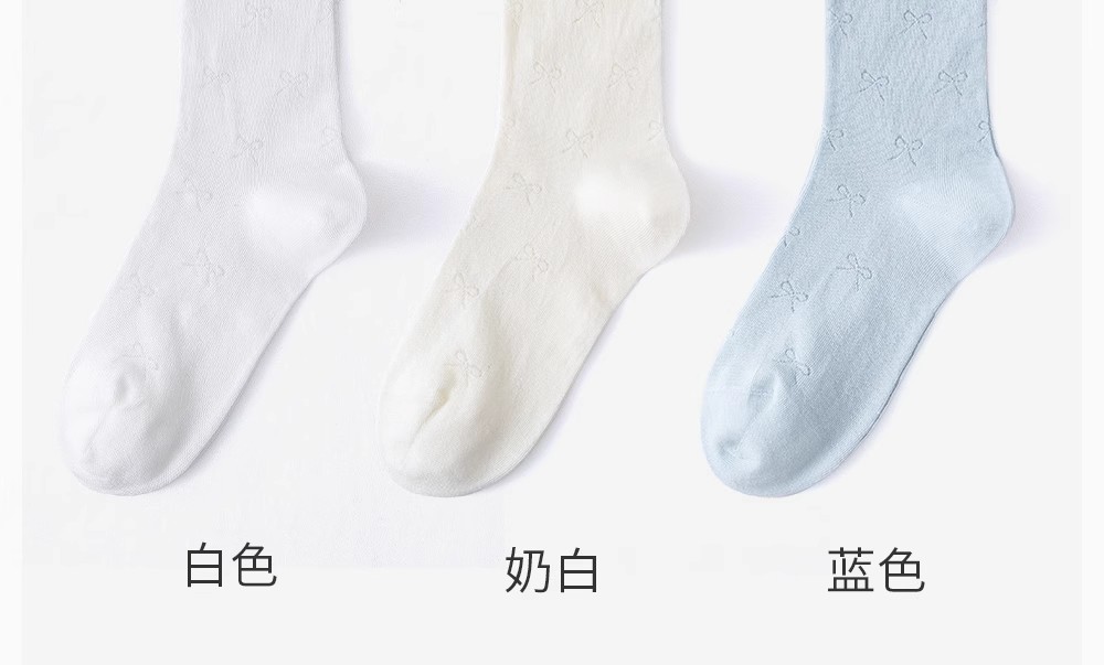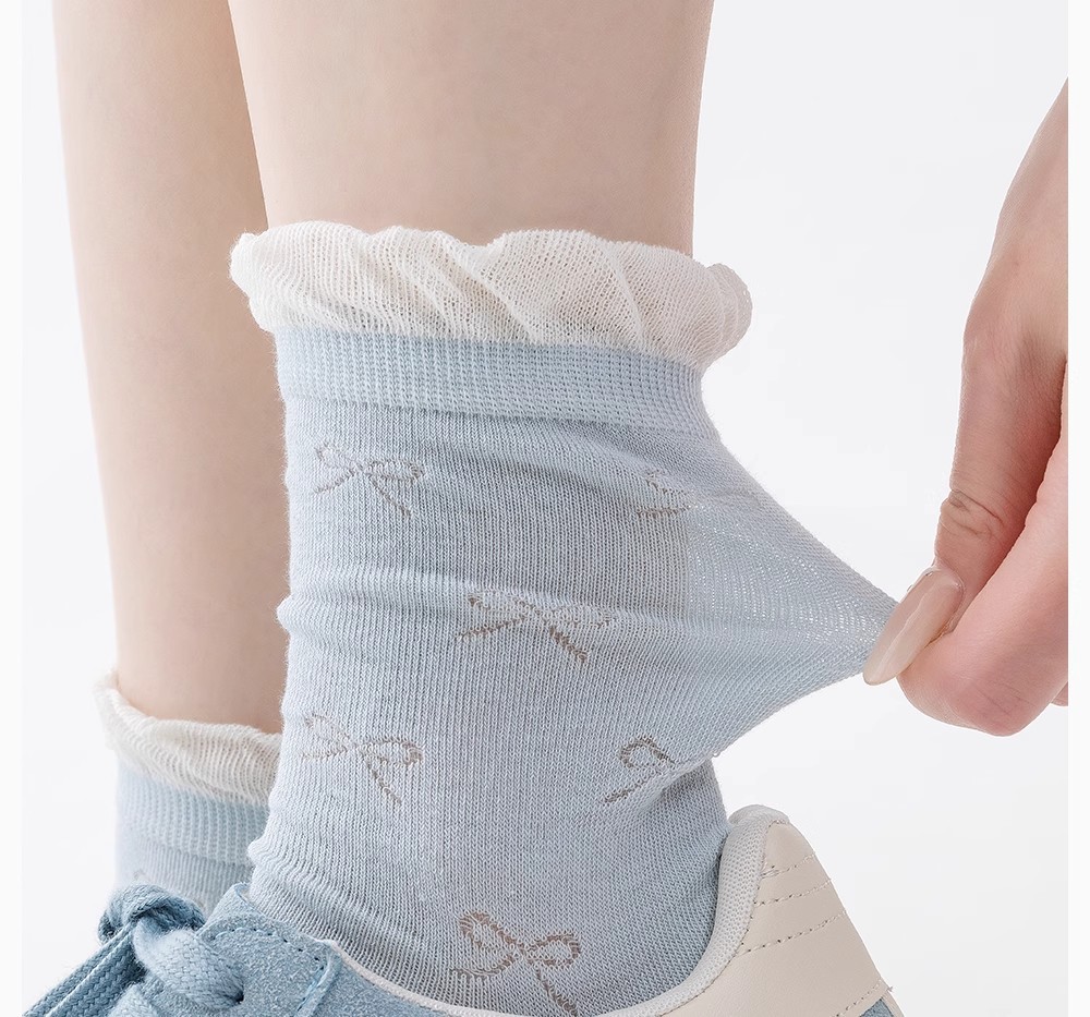 春夏日系泡泡口花边袜子堆堆袜女中筒袜蝴蝶结芭蕾风薄款镂空女袜