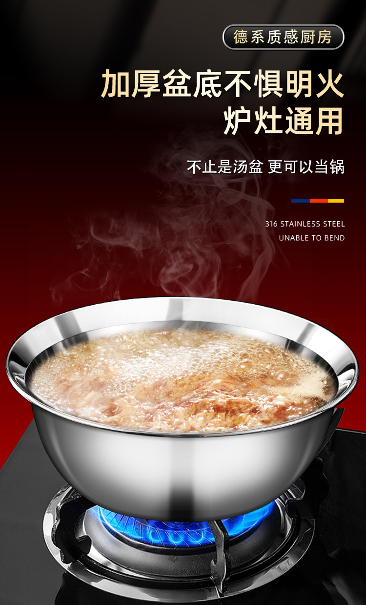 食品级316不锈钢汤盆汤碗加深饭碗厨房加厚家用菜盆食堂幼儿园