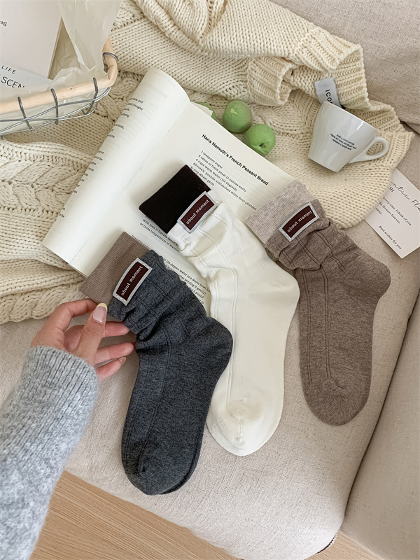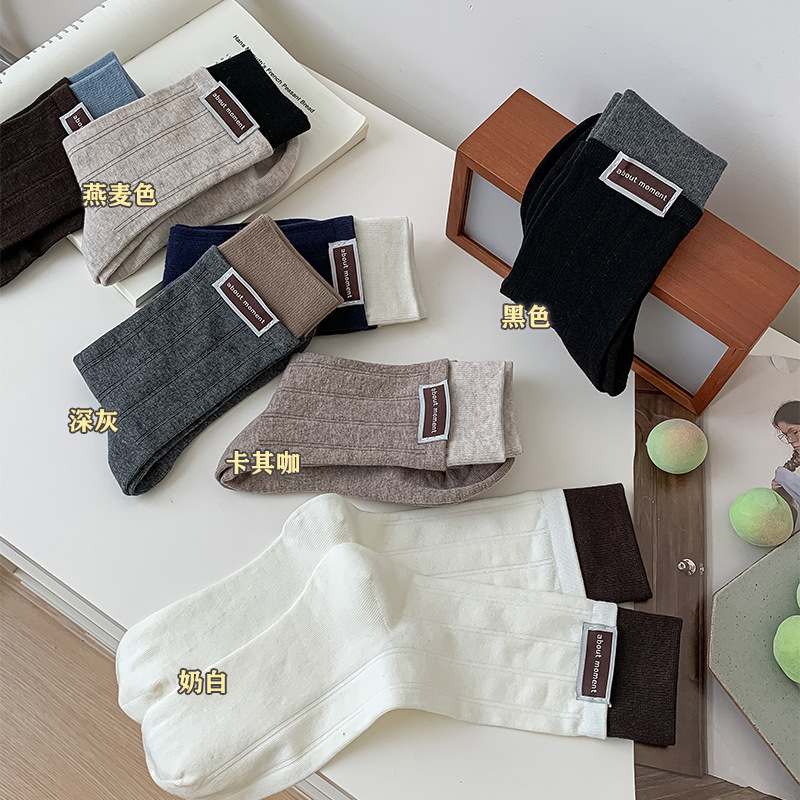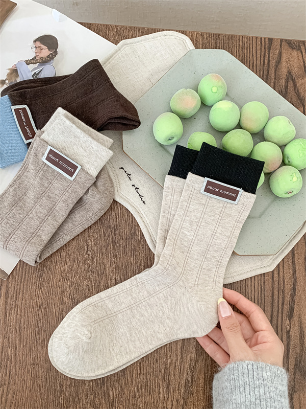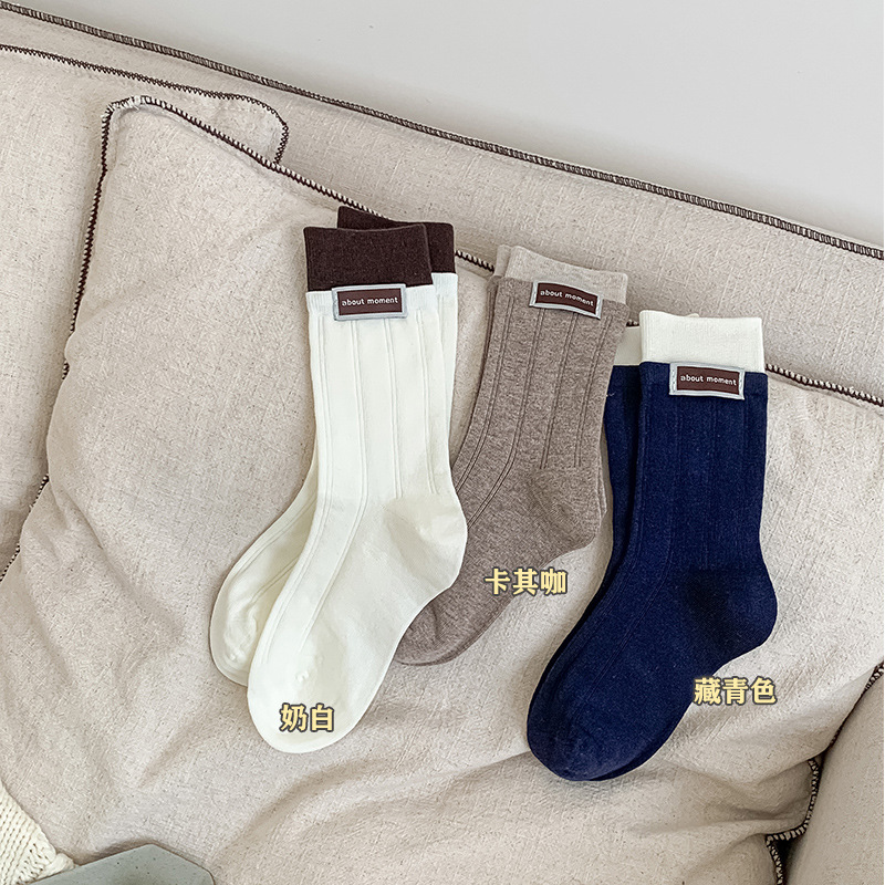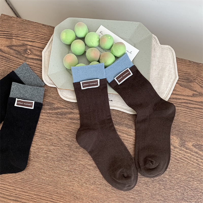 撞色拼接休闲袜子女棉质吸汗透气弹力中筒袜ins潮通勤好搭堆堆袜