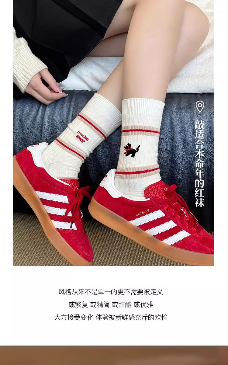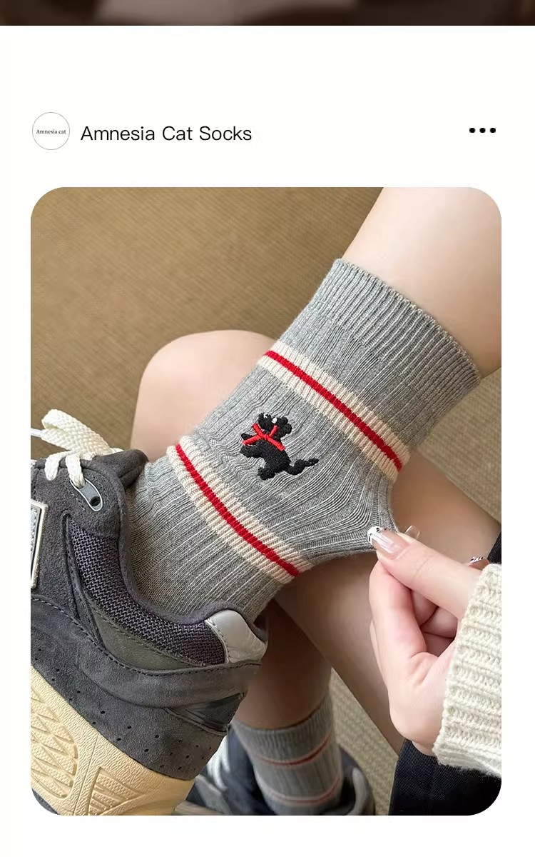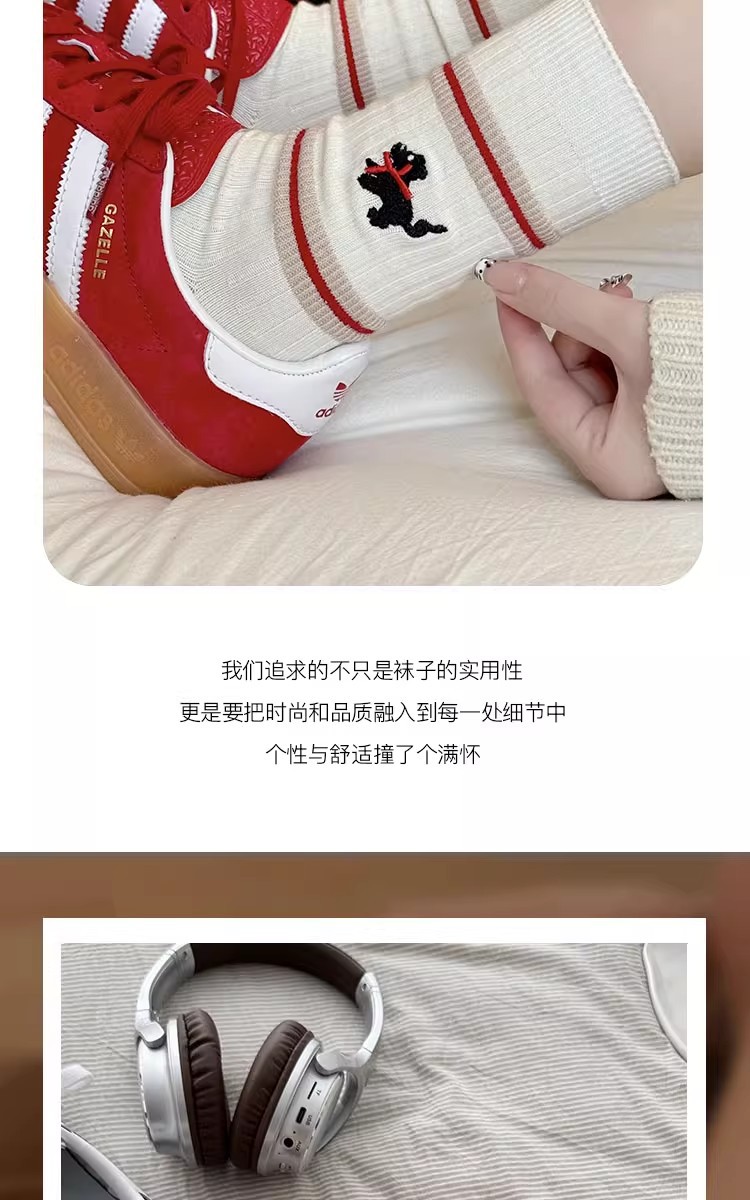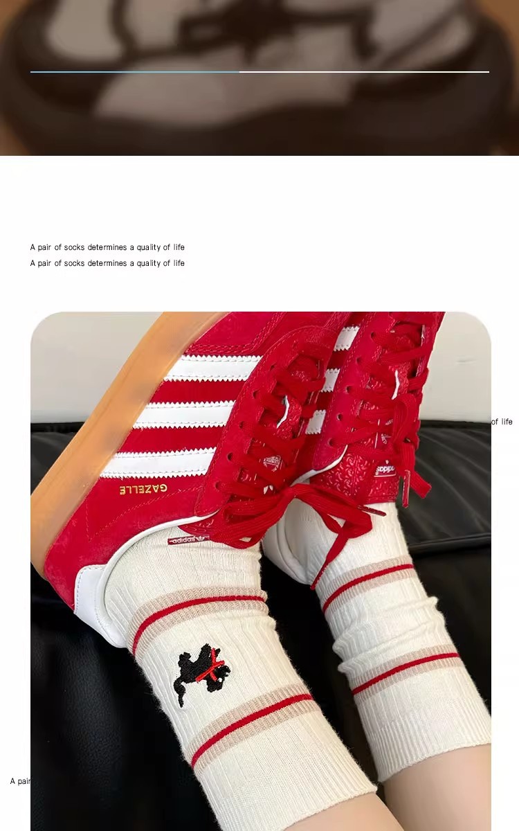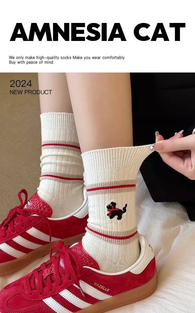 白色袜子女春秋ins潮纯棉中筒袜可爱日系线条小狗设计感长筒袜夏