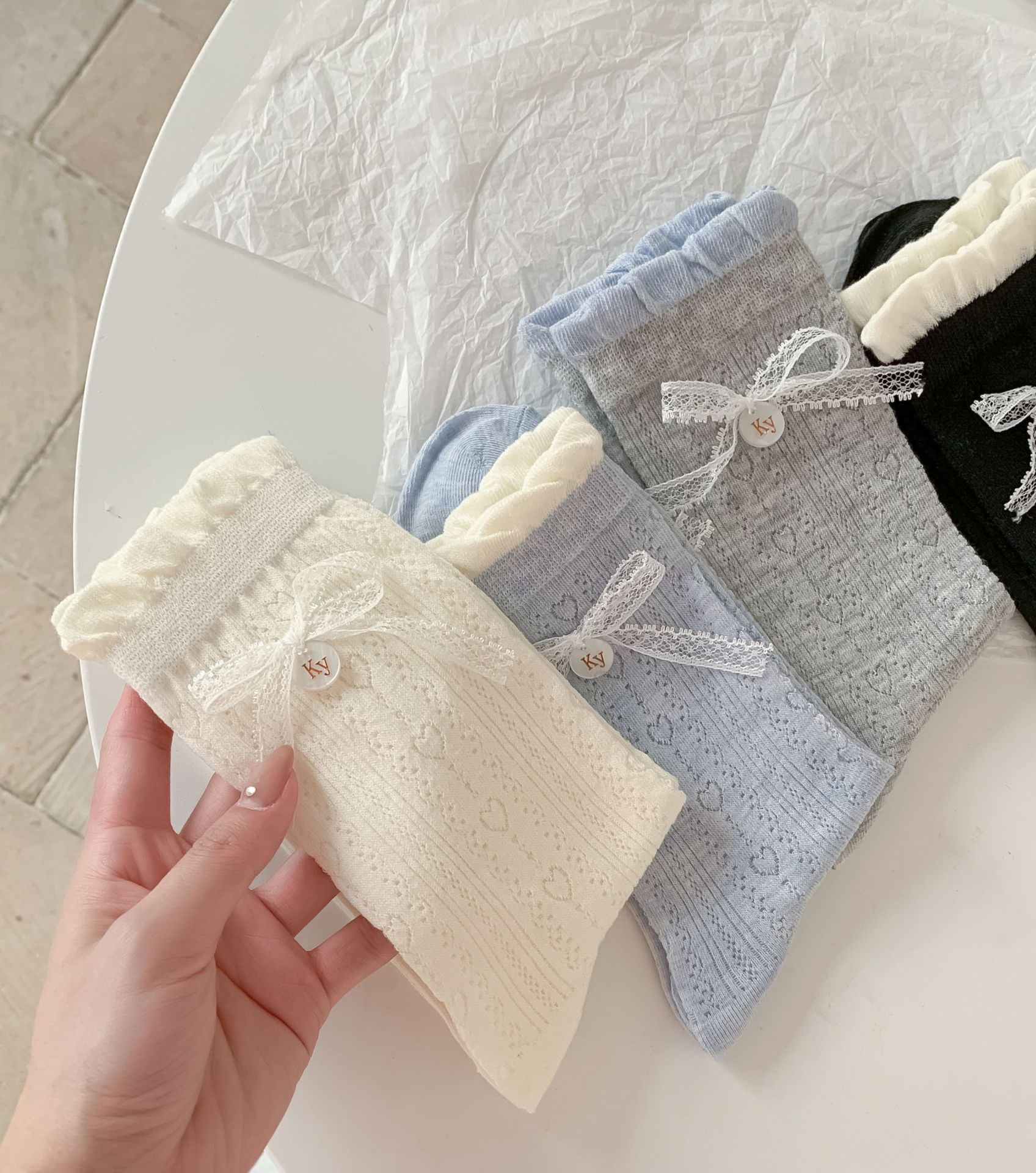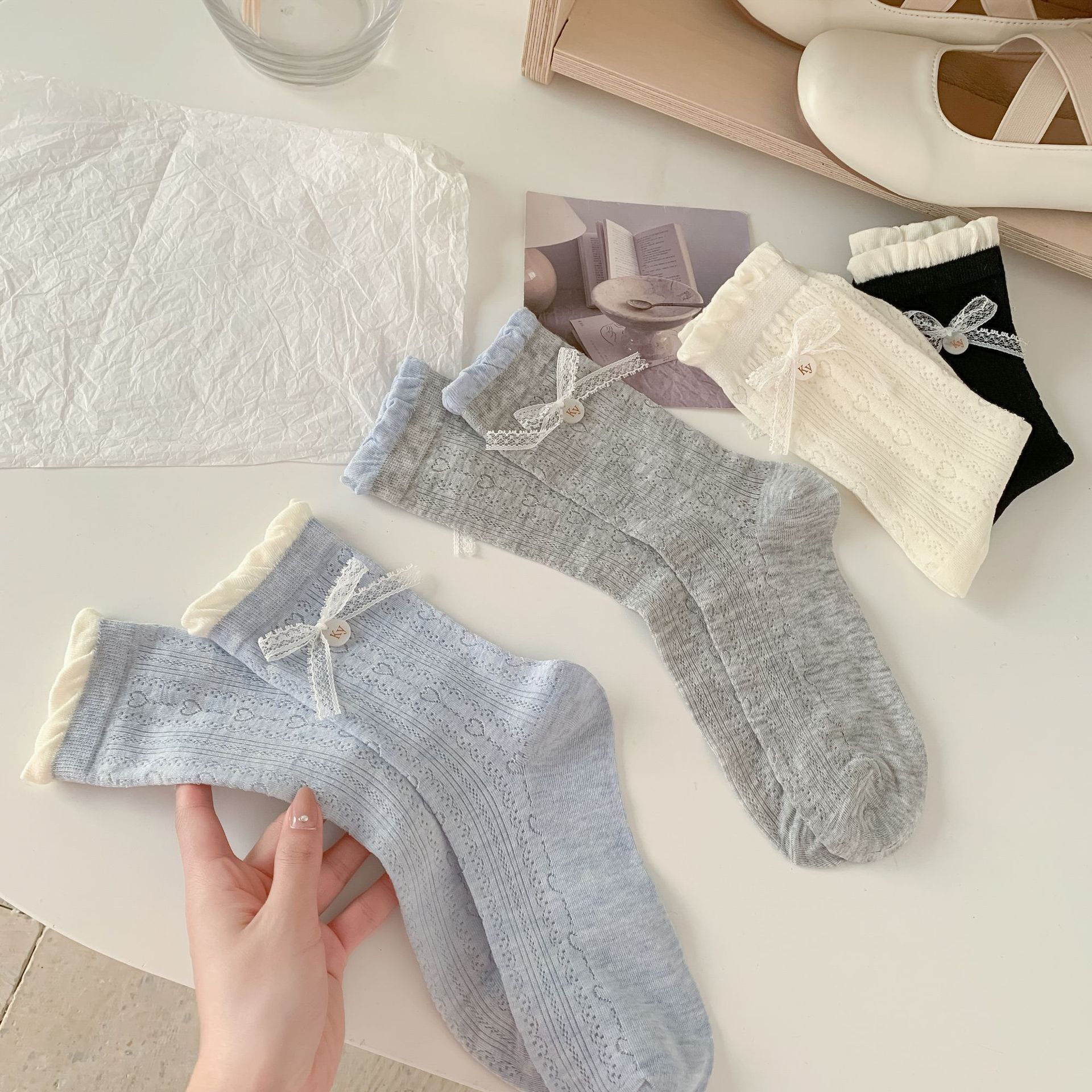 夏季薄款女童儿童花边袜子洛丽塔蝴蝶结公主网眼蕾丝儿童长筒袜棉