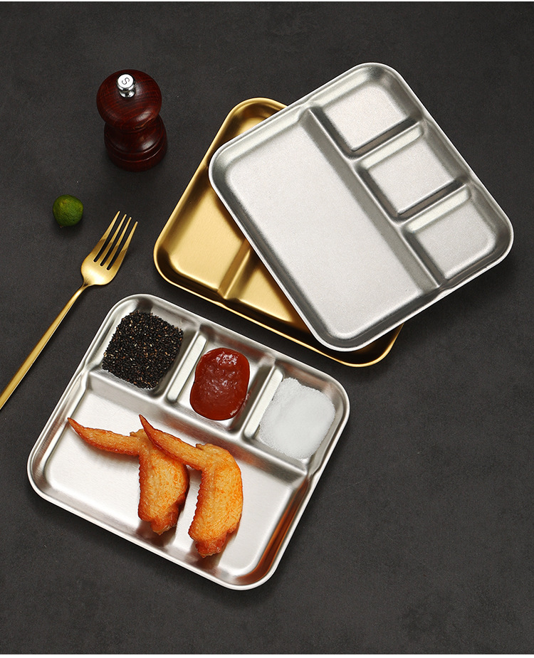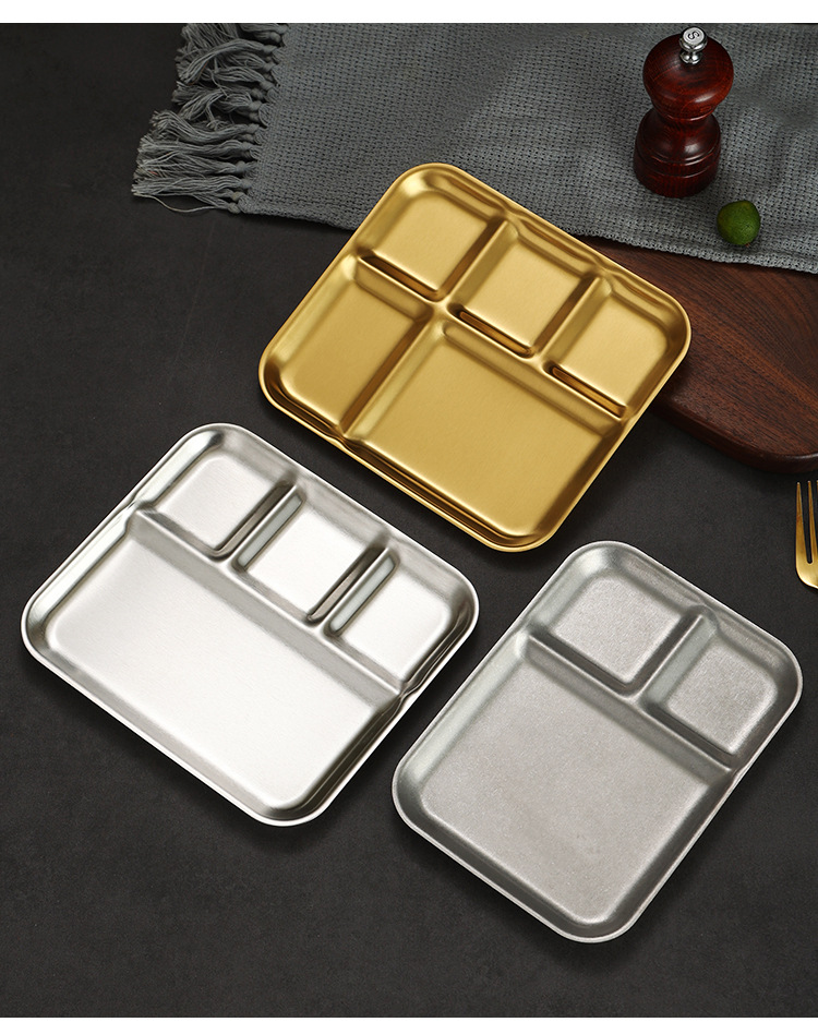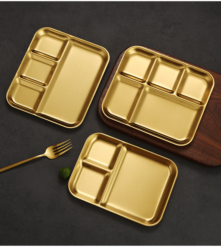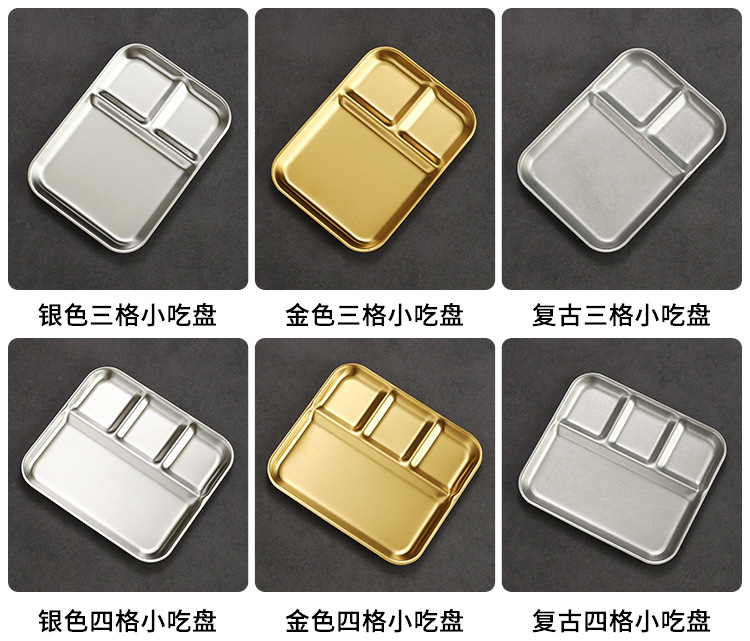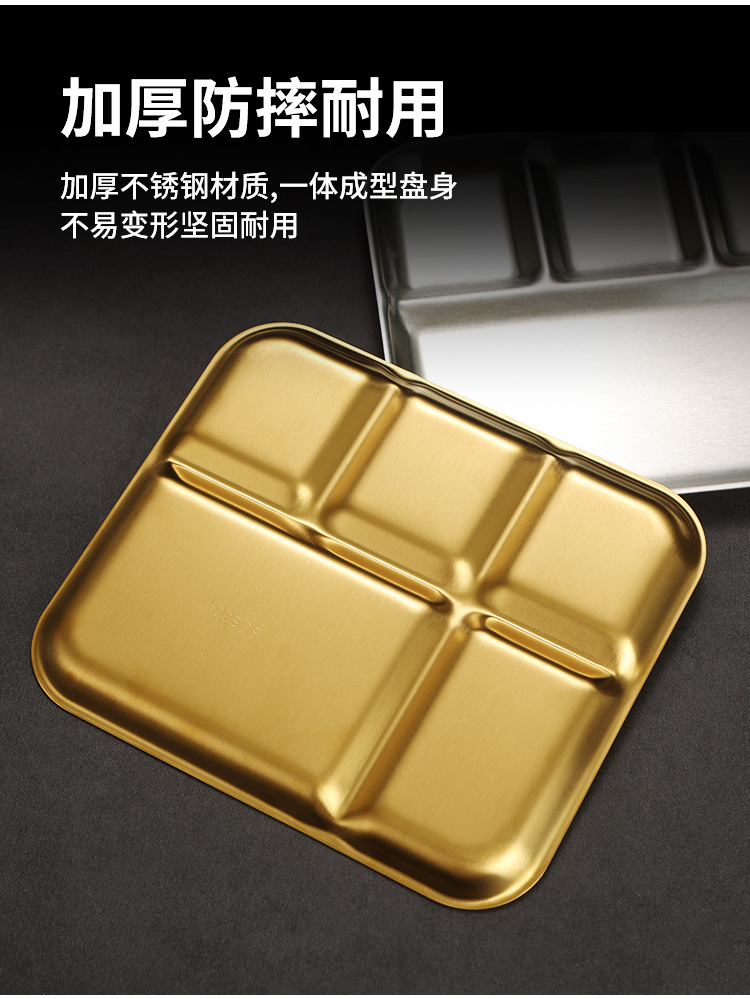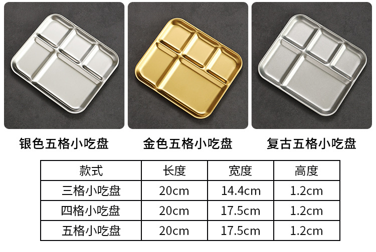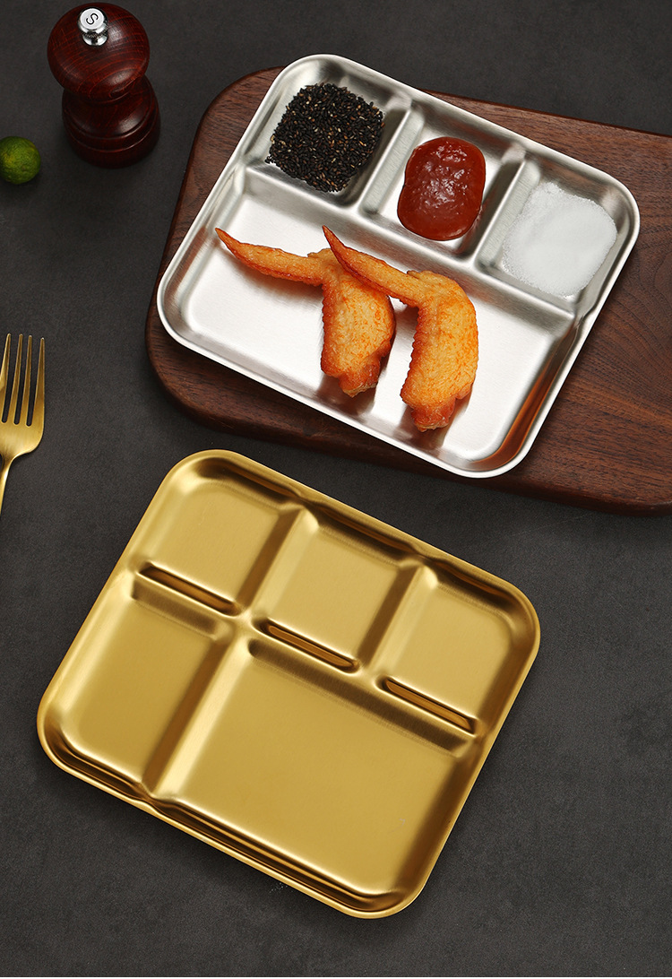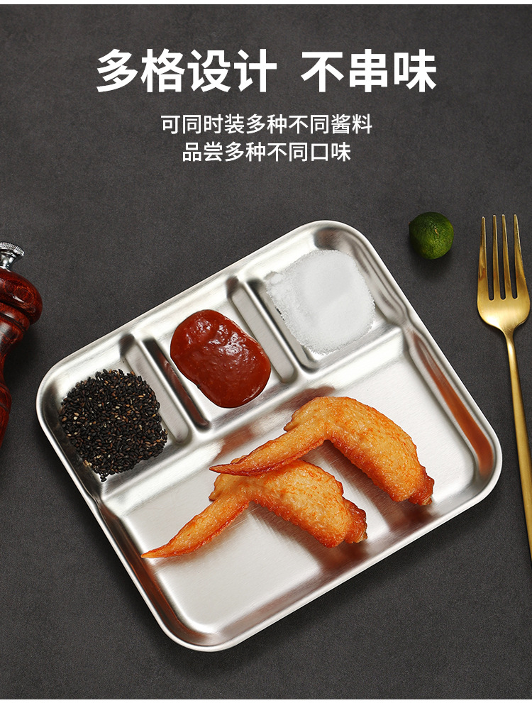 韩式不锈钢调料盘烤肉店金色复古专用餐具蘸料碟三格酱料碟牛排盘