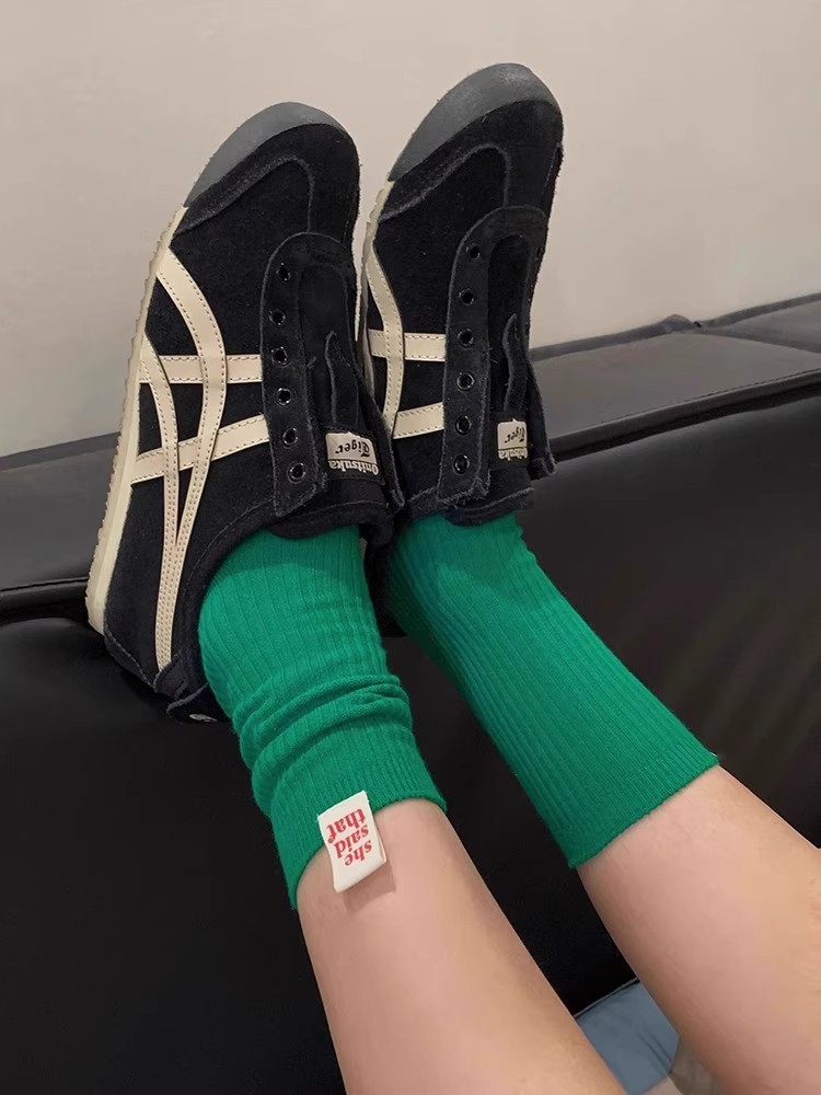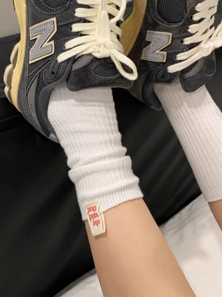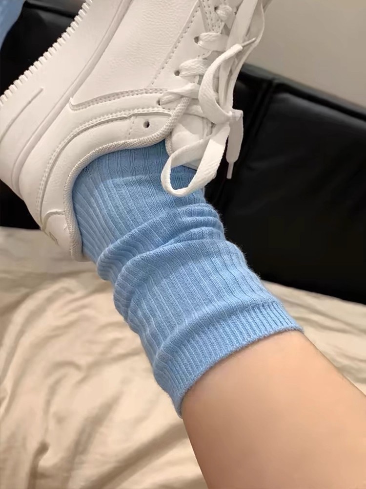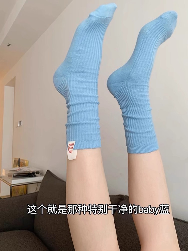 堆堆袜子女夏季薄款纯棉中筒袜双针布标多巴胺春秋款女士蓝色长袜