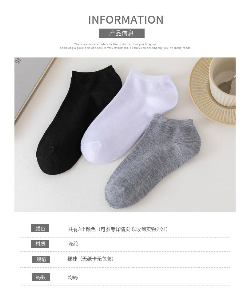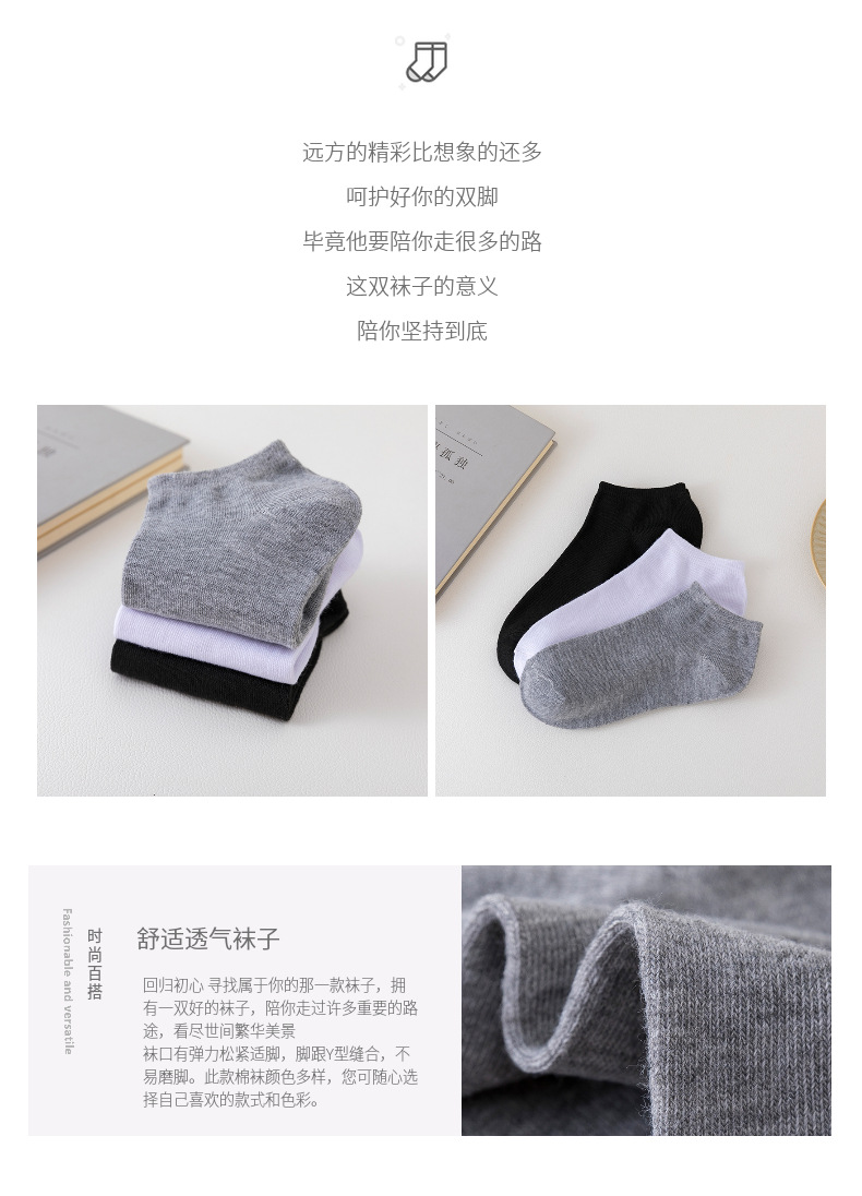 跨境专供男士袜子纯色船袜黑白灰低帮浅口袜四季通用休闲短袜批发