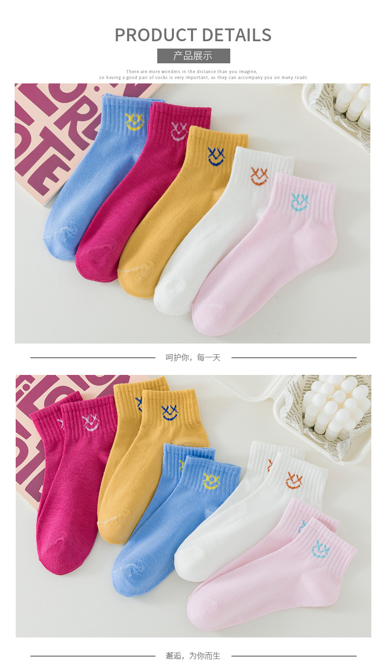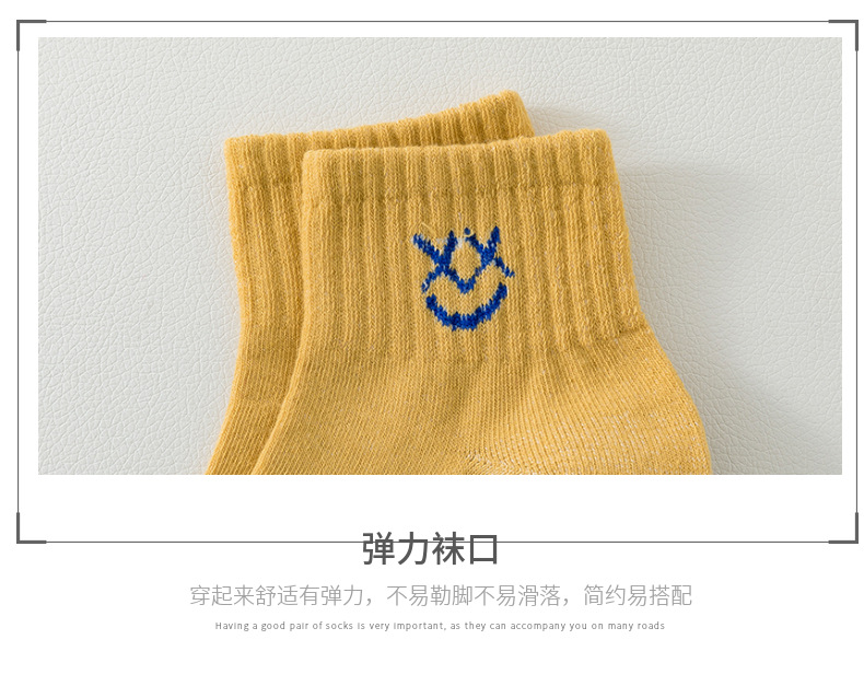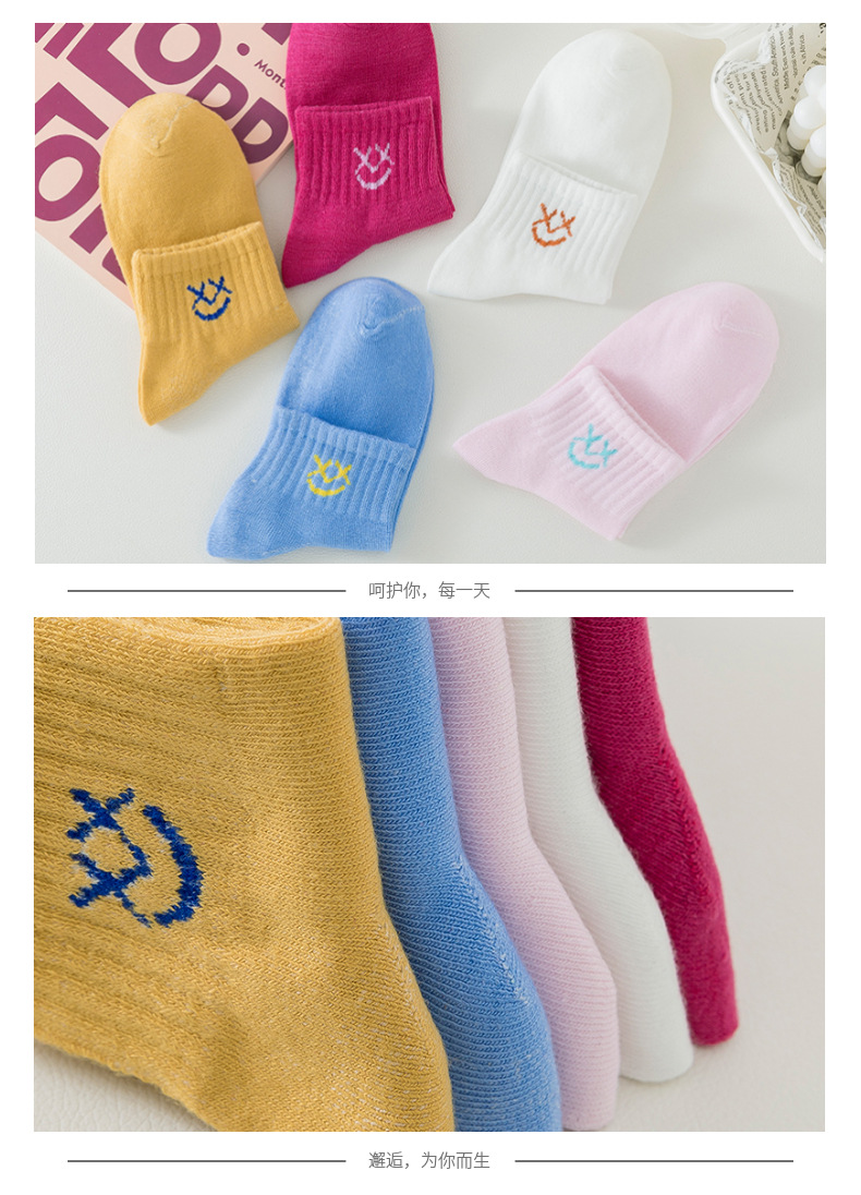 跨境袜子女24秋季新款彩色眯眼笑脸系女中筒袜子吸汗透气袜子批发