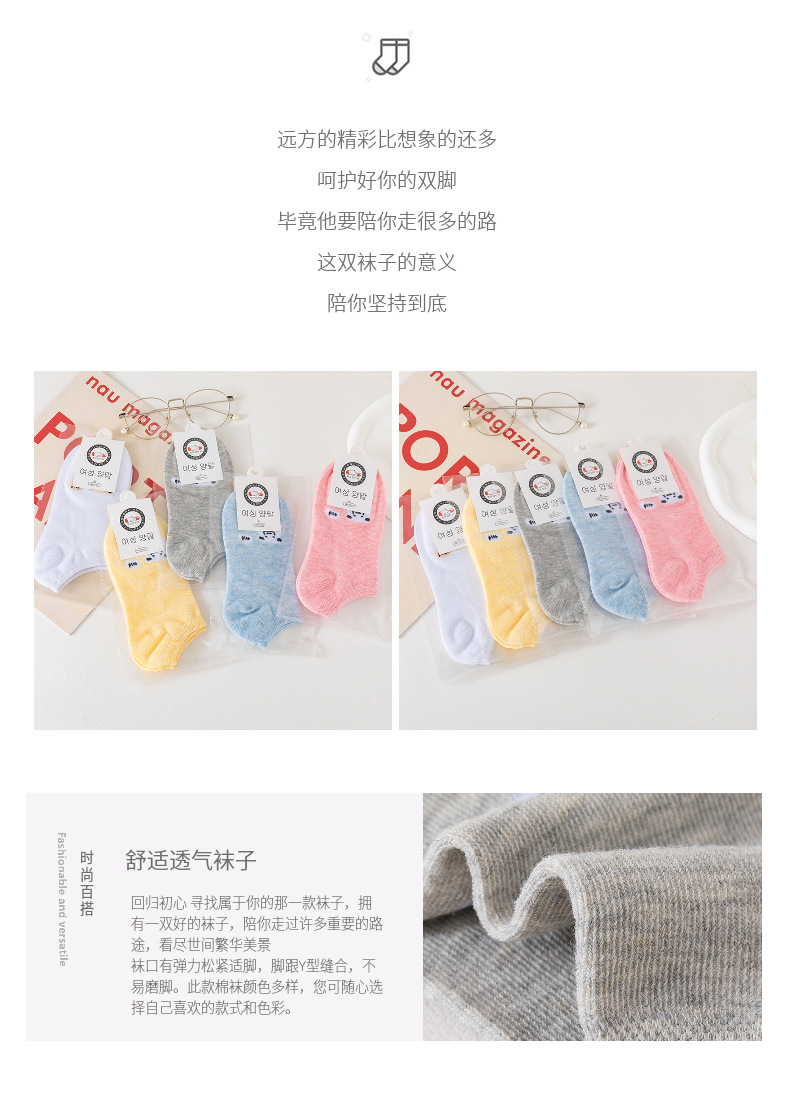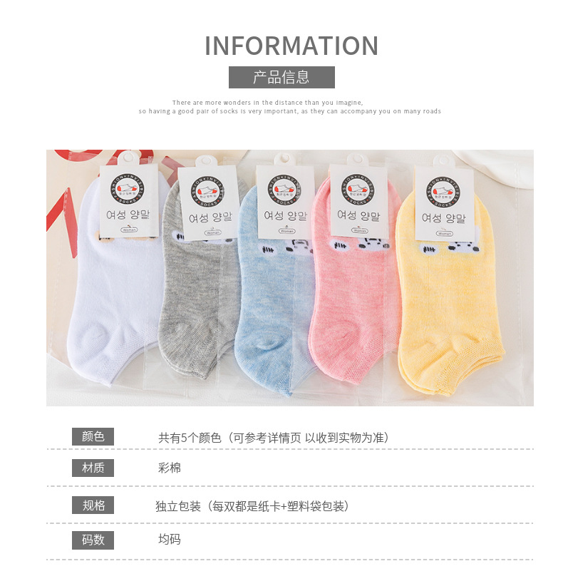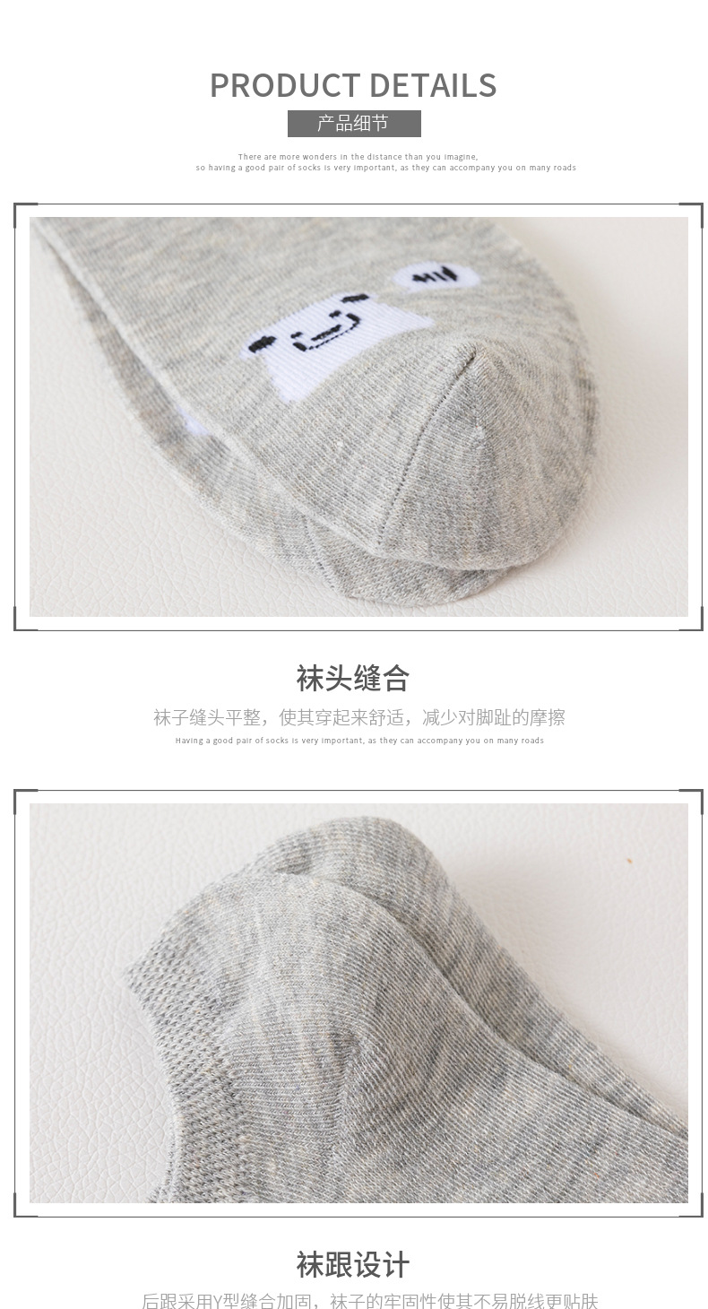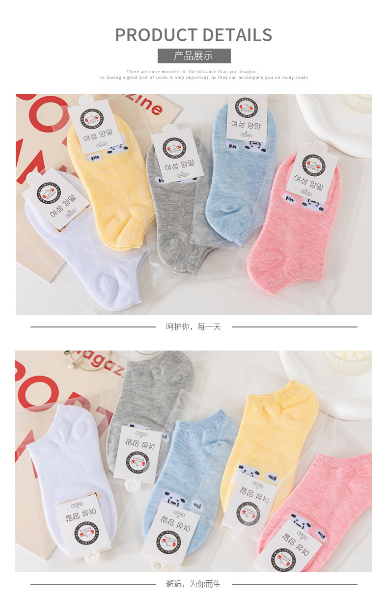 女士船袜春夏季新款浅口低帮短筒袜小熊图案百搭甜美糖果色彩棉袜