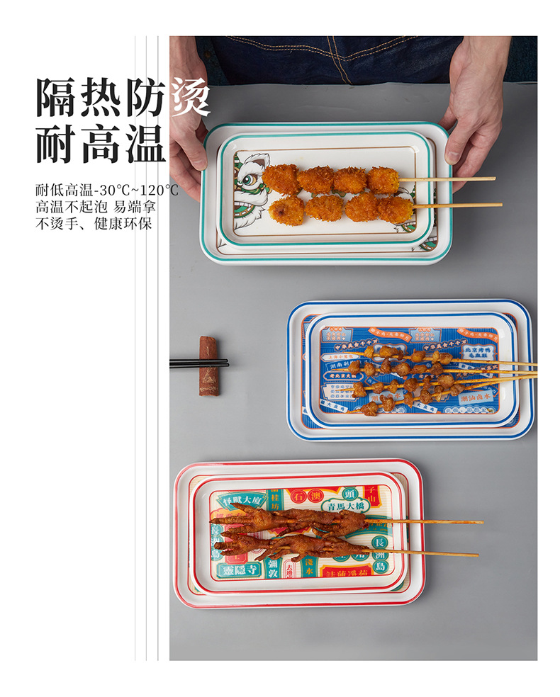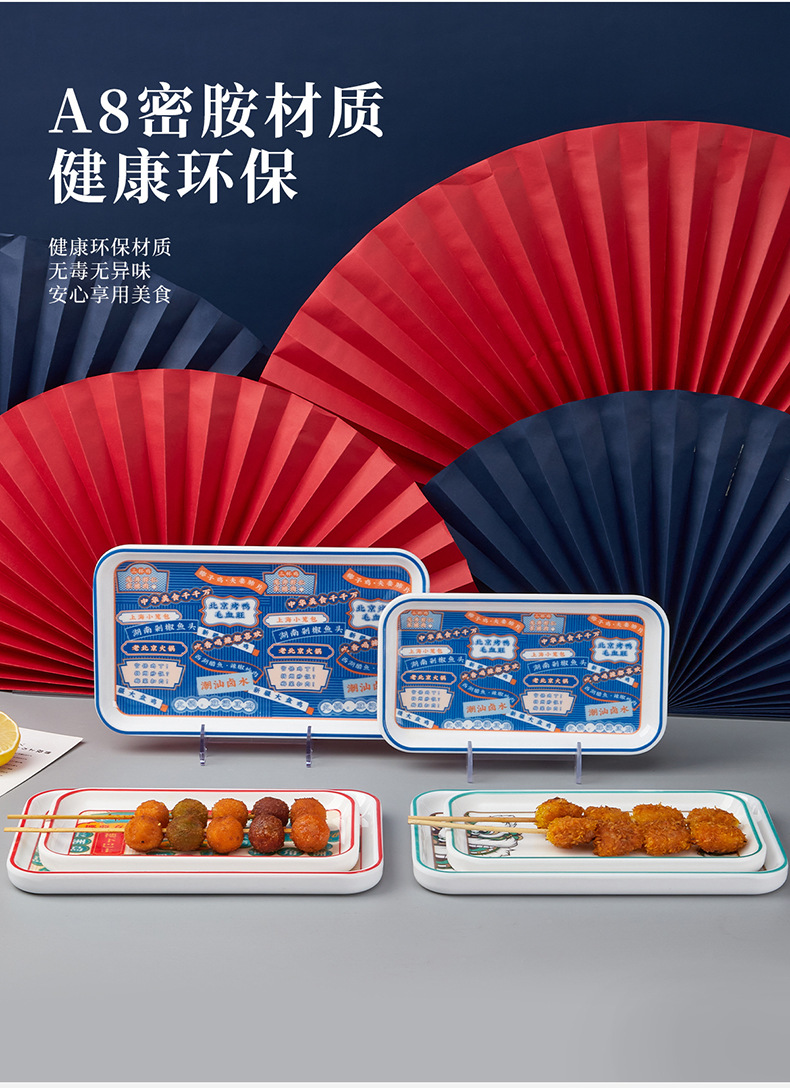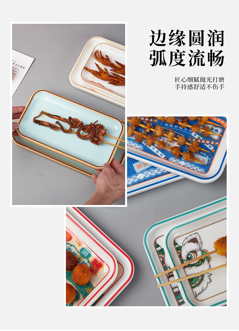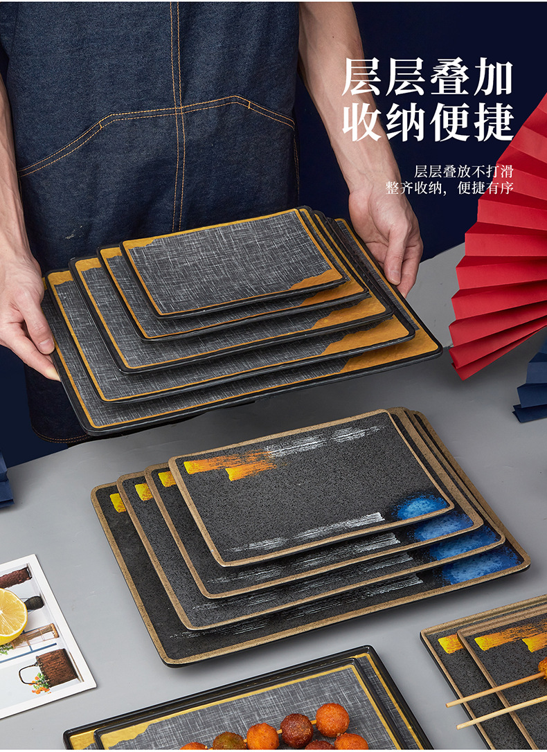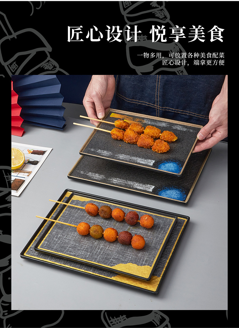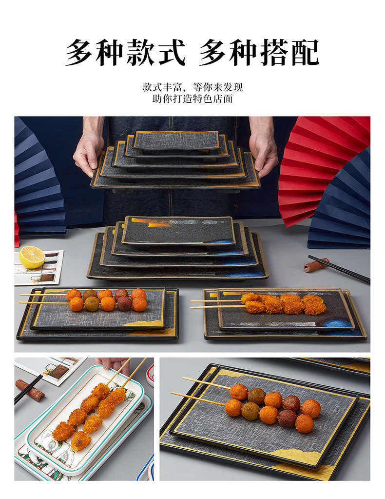 韩式日式长碟长形仿瓷盘密胺竖条餐盘火锅条盘长方形烤肉烧烤专用