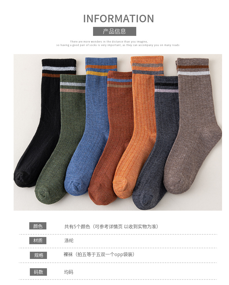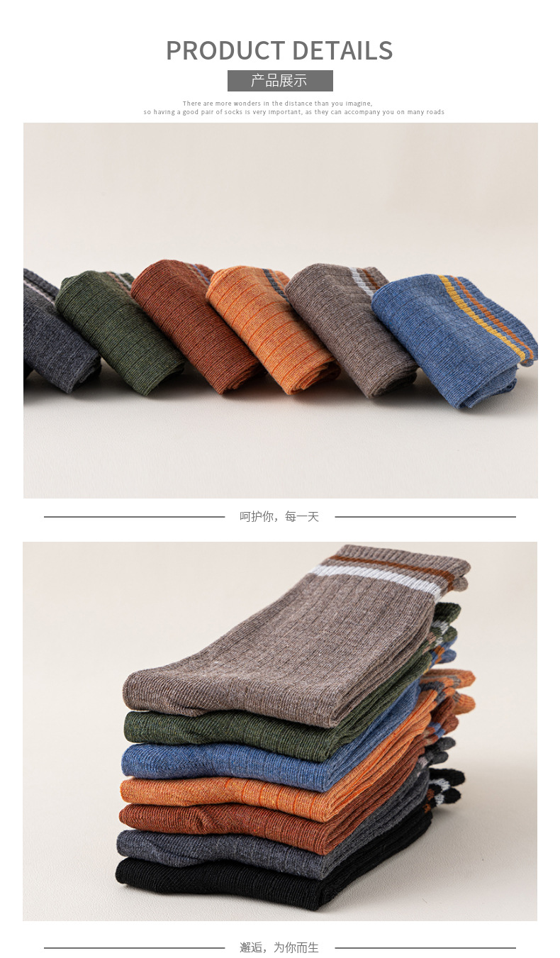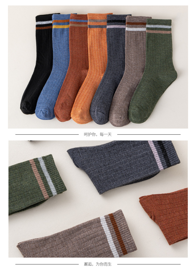 跨境袜子女24秋季新款潮流百搭彩色二杠中筒袜子吸汗透气袜子批发