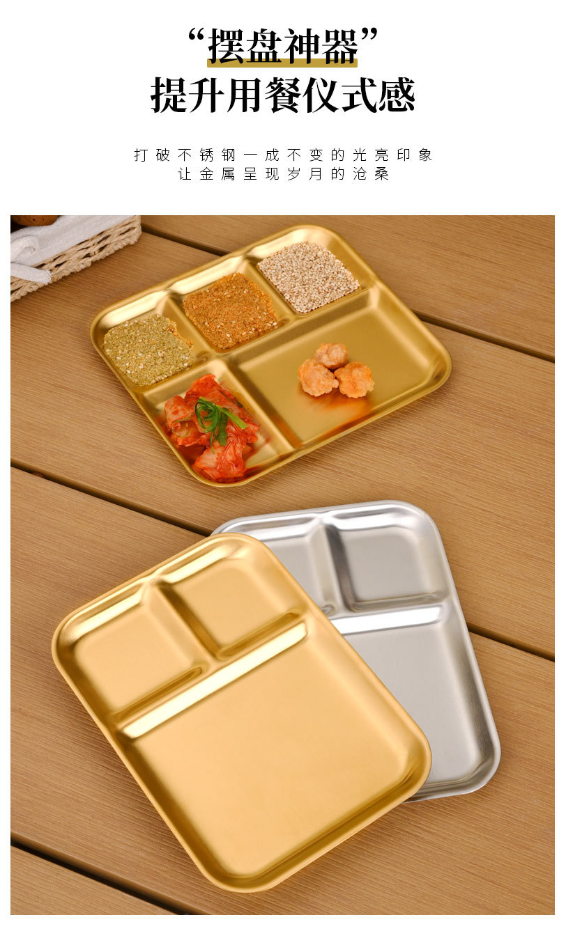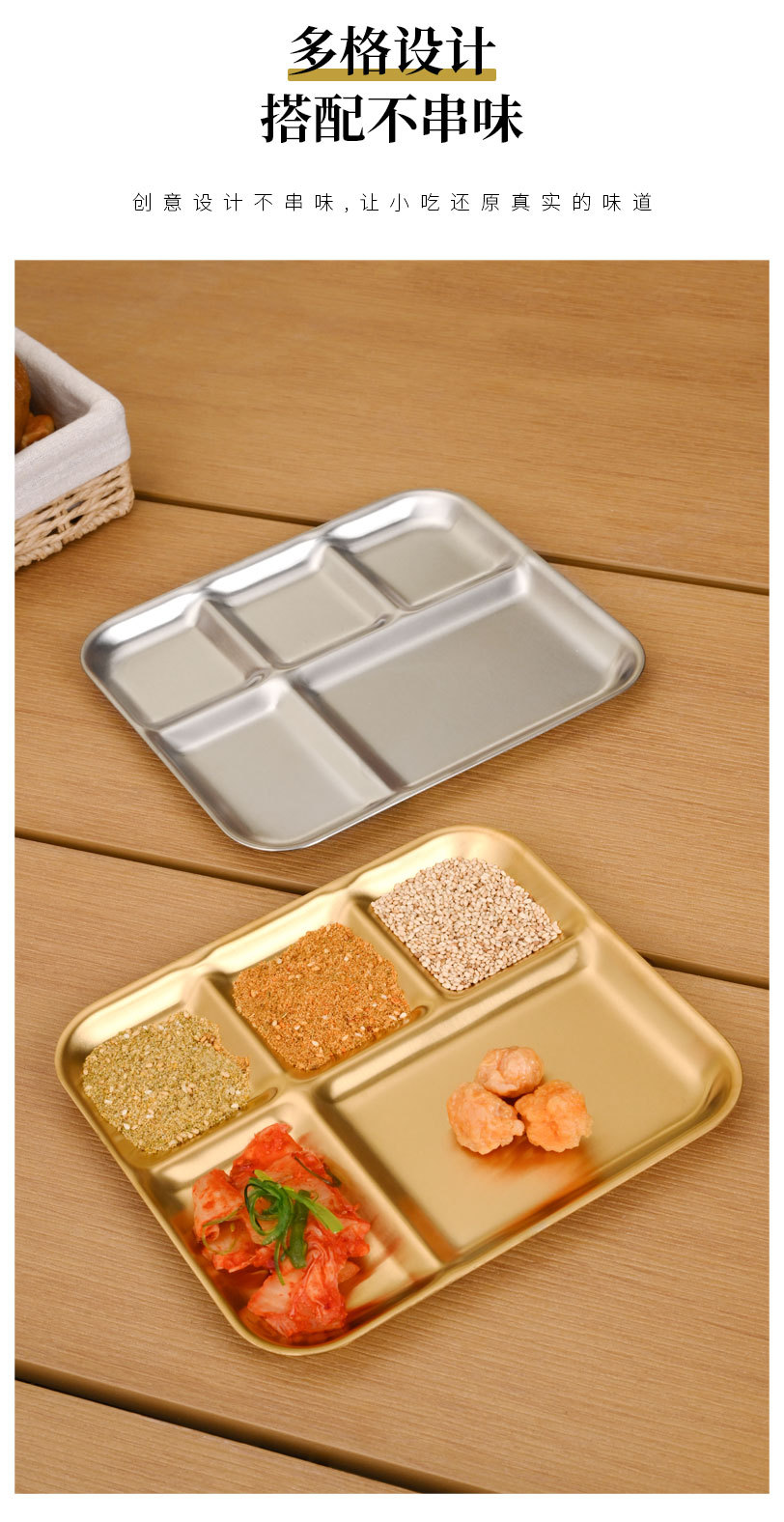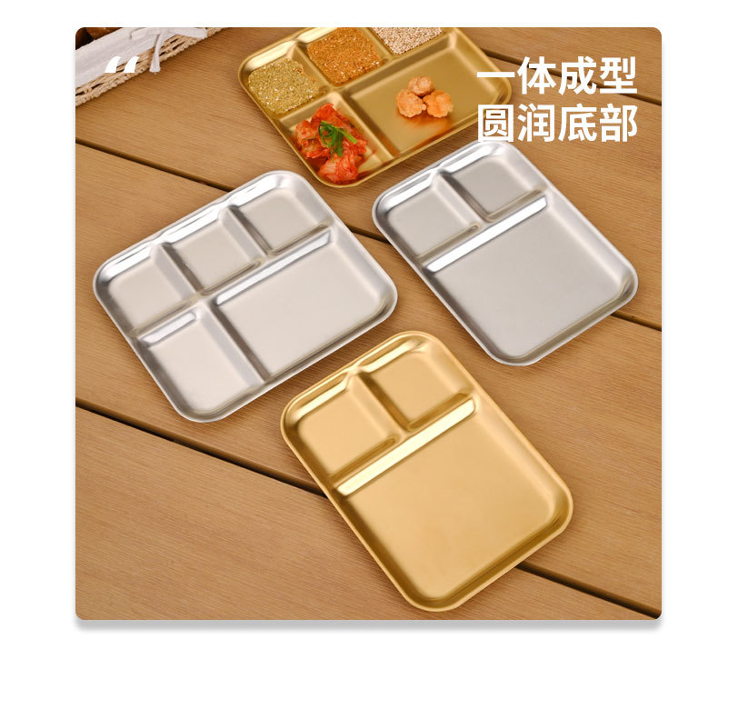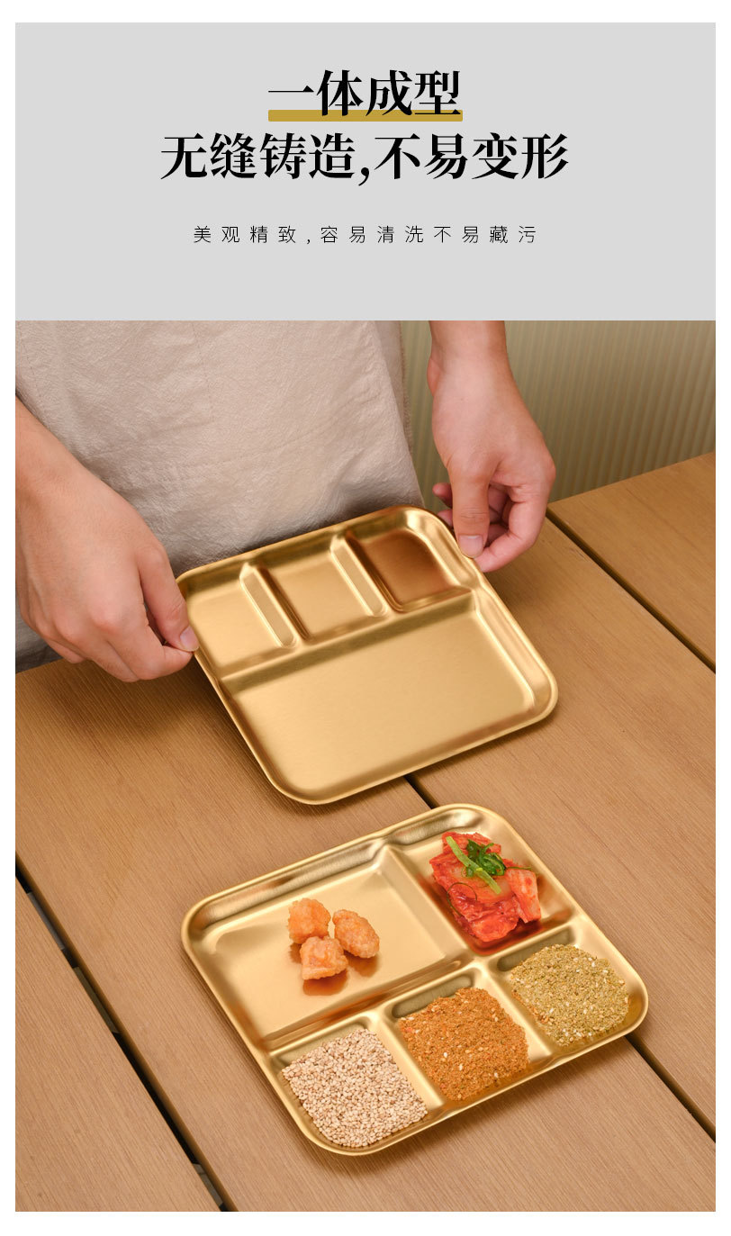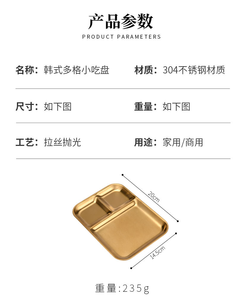 韩式304不锈钢蘸料一体盘烤肉店专用分格调料盘子金色酱料碟餐具