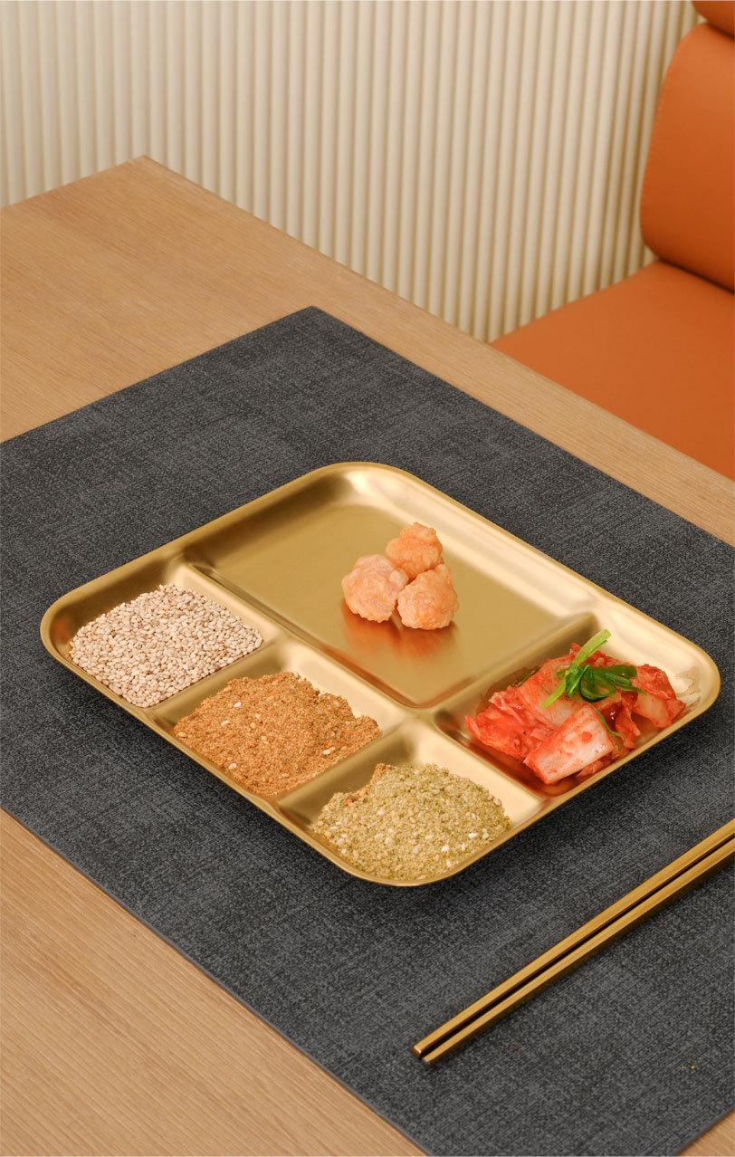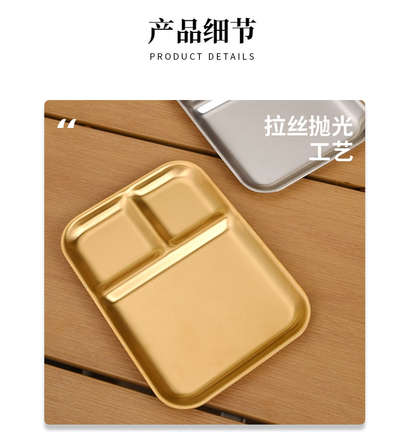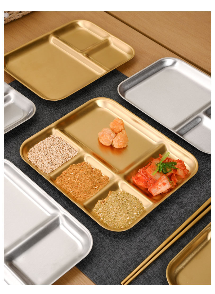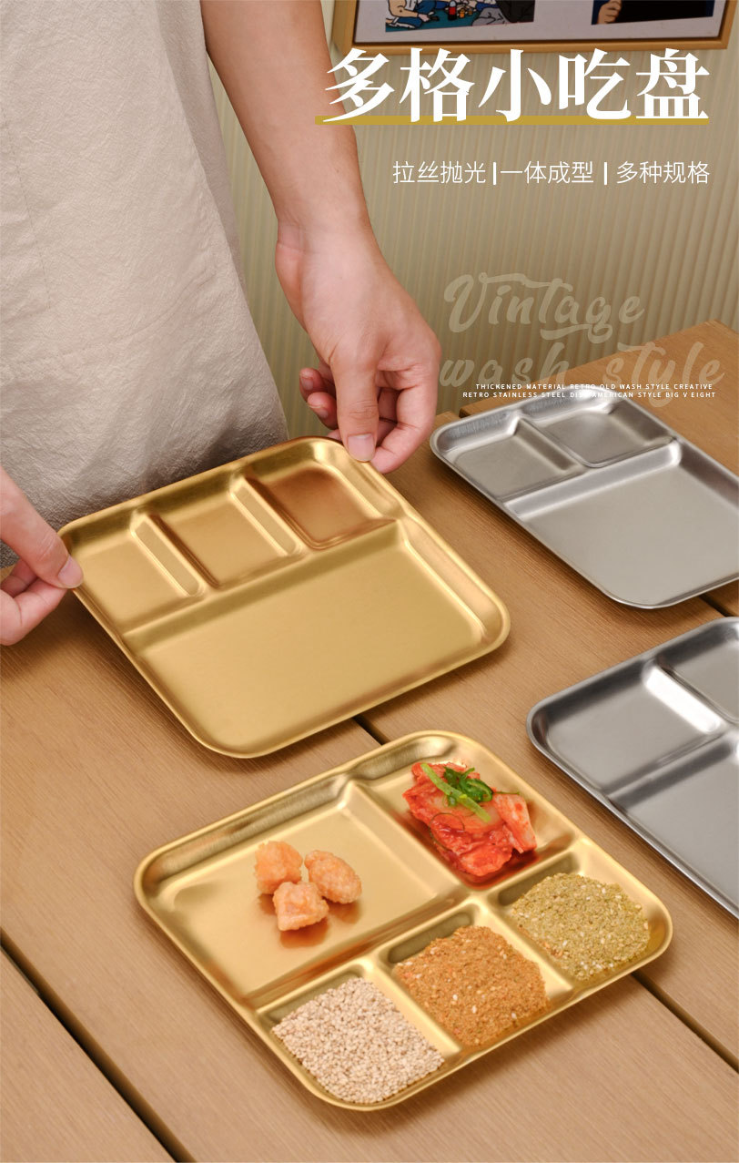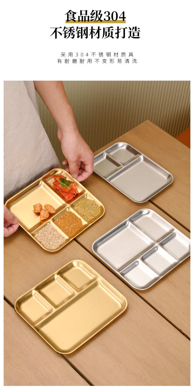 韩式304不锈钢蘸料一体盘烤肉店专用分格调料盘子金色酱料碟餐具