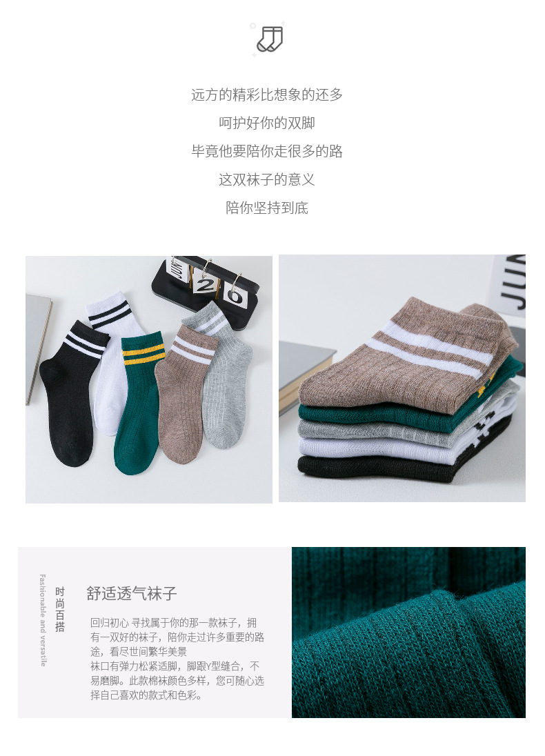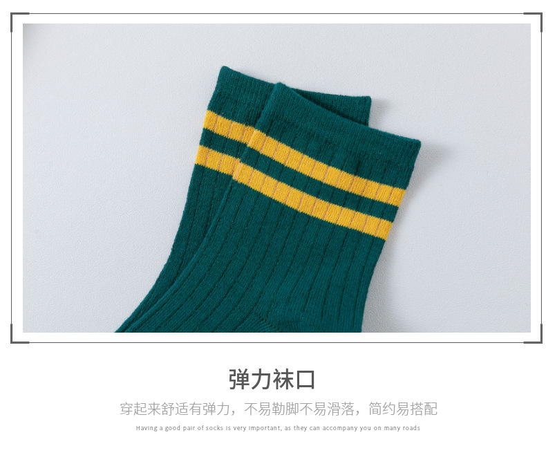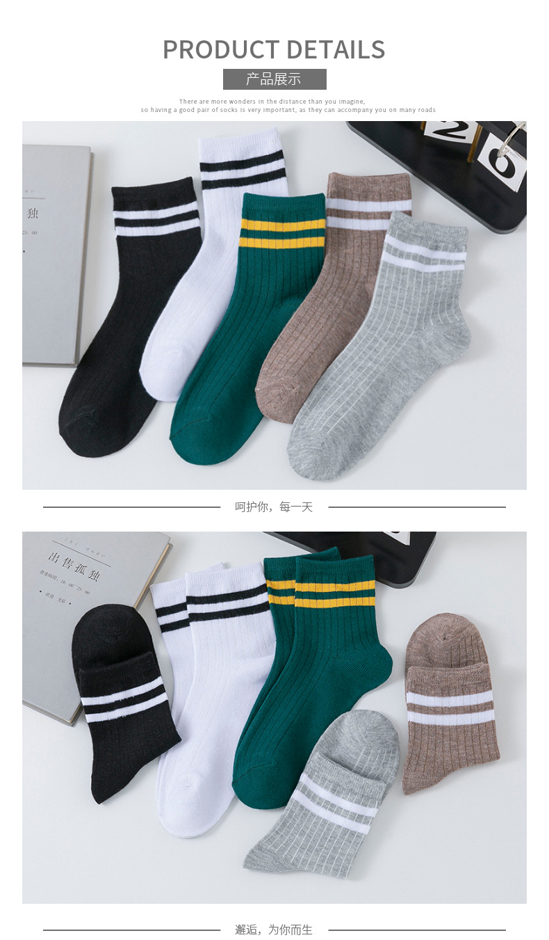 跨境袜子男新款潮流日系二杠潮流百搭中筒男袜子吸汗透气袜子批发