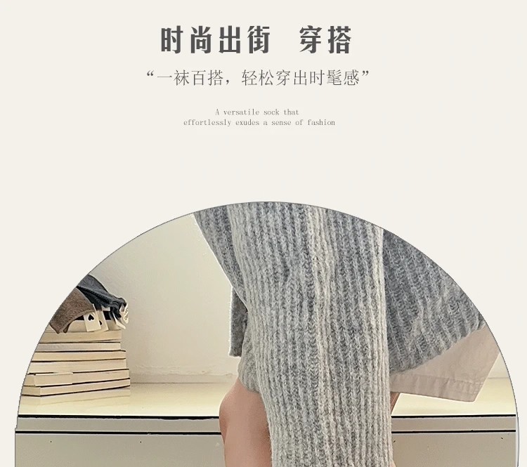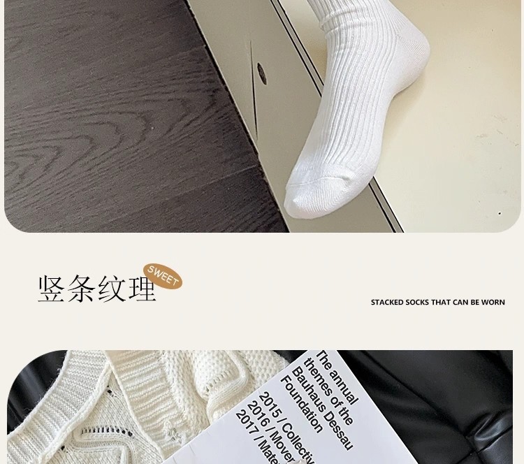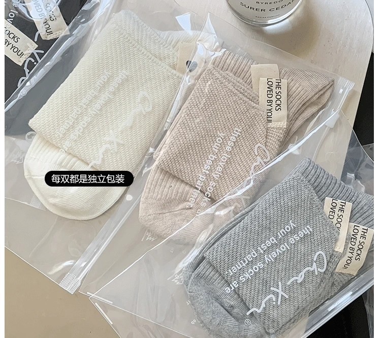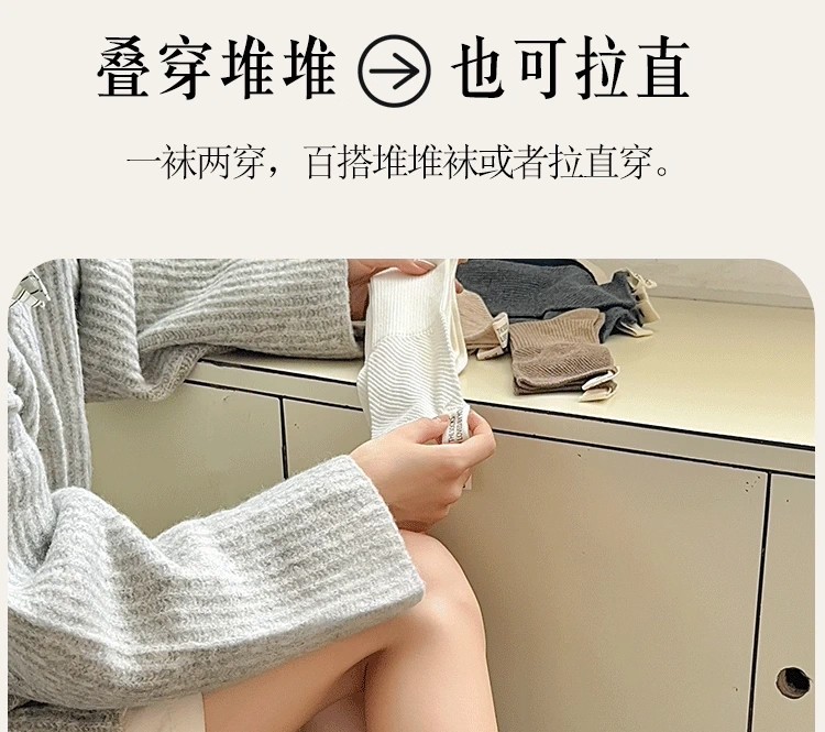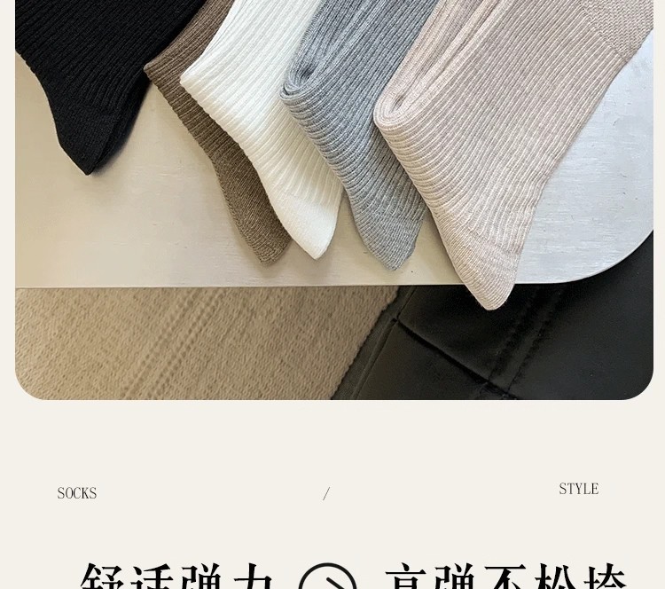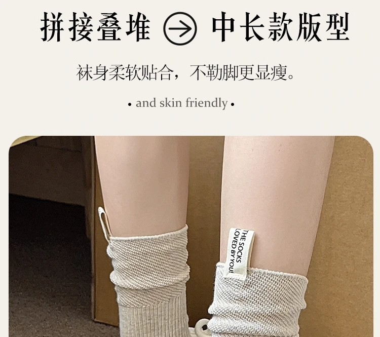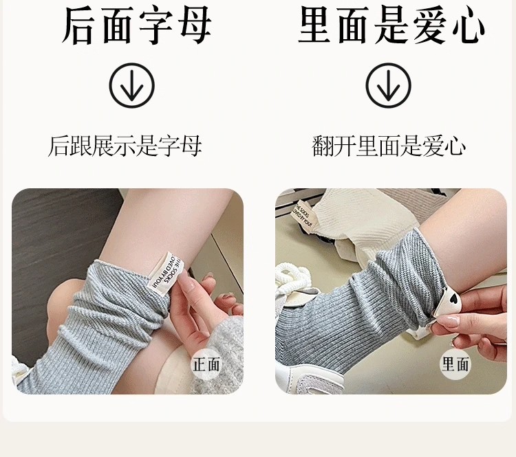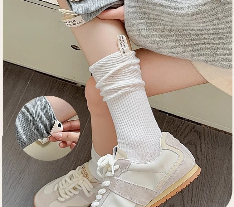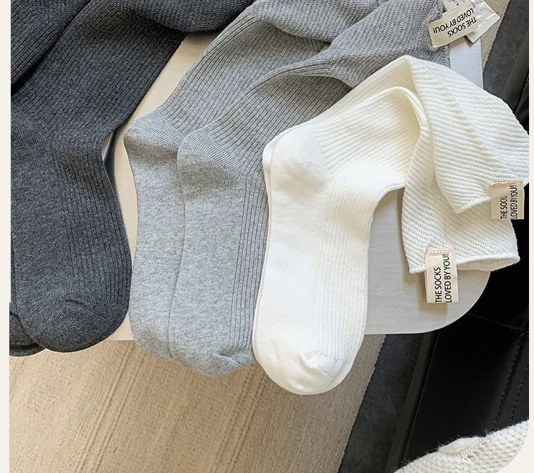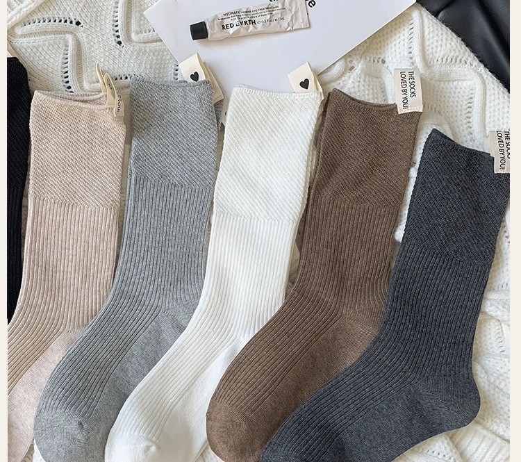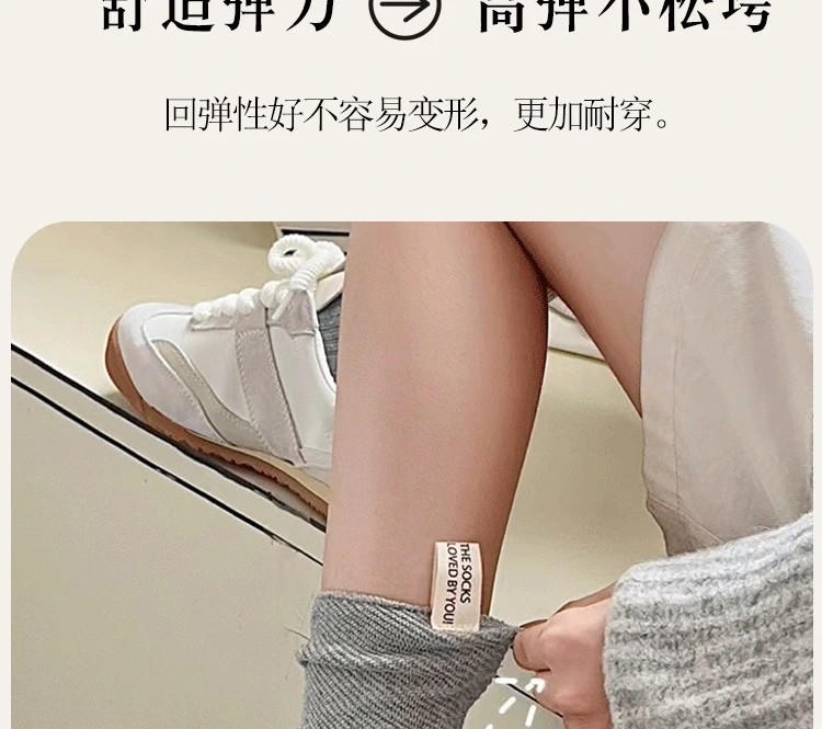 灰色袜子女春秋纯棉中筒袜白色配勃肯鞋月子袜无骨堆堆袜女款秋冬