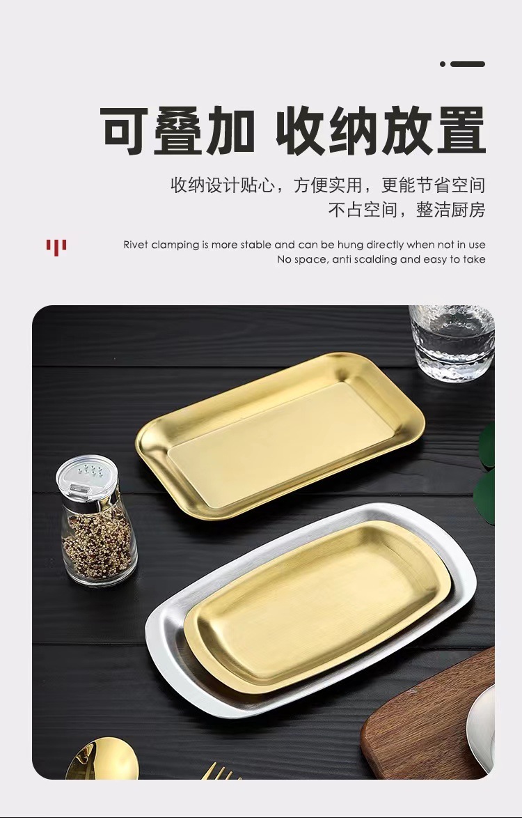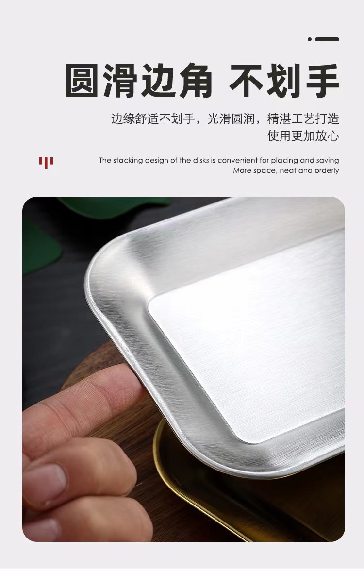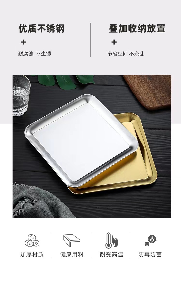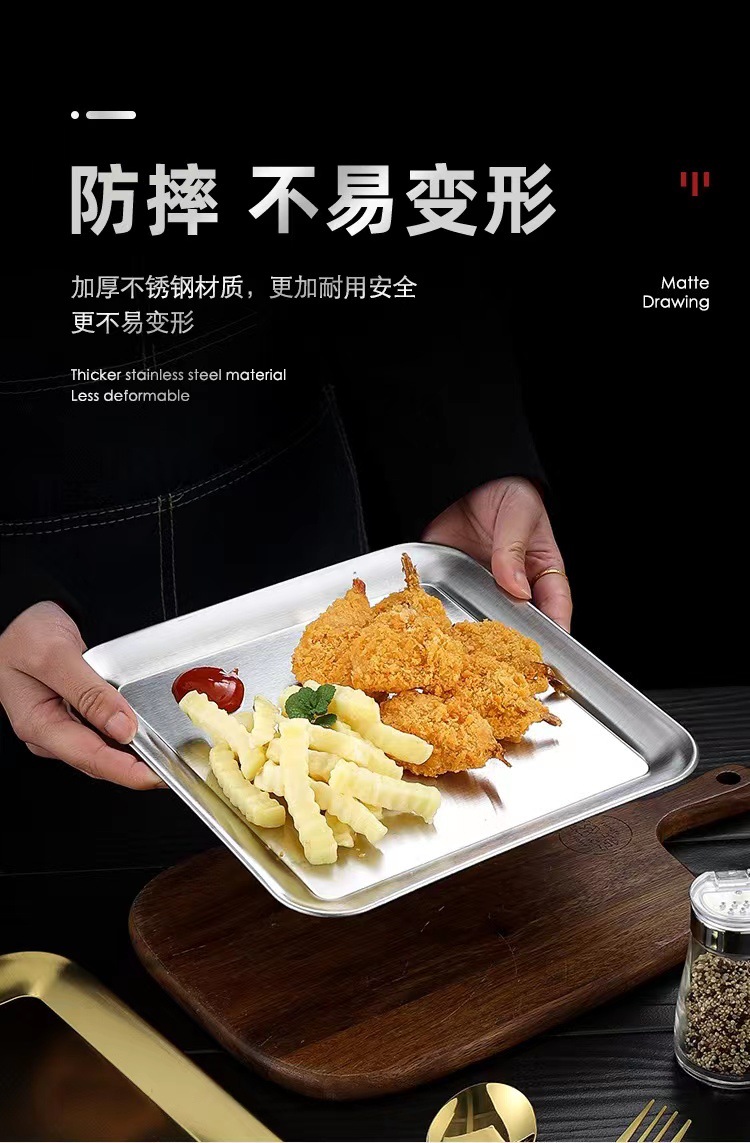 304不锈钢方盘韩式点心烤肉盘烧烤盘加厚盘子长方形菜盘平底托盘