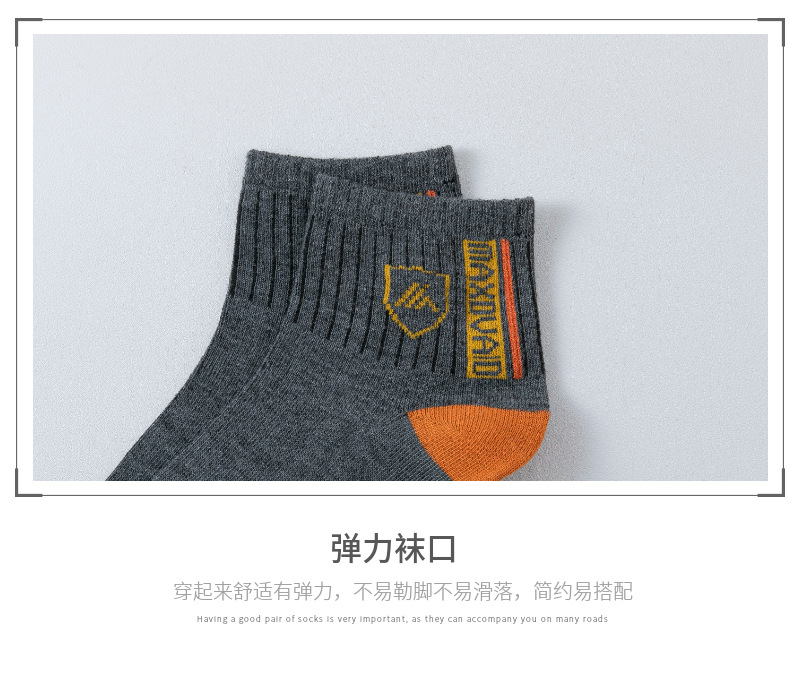 跨境袜子男秋冬潮流运动纯色盾牌男中筒袜子吸汗舒适透气袜子批发