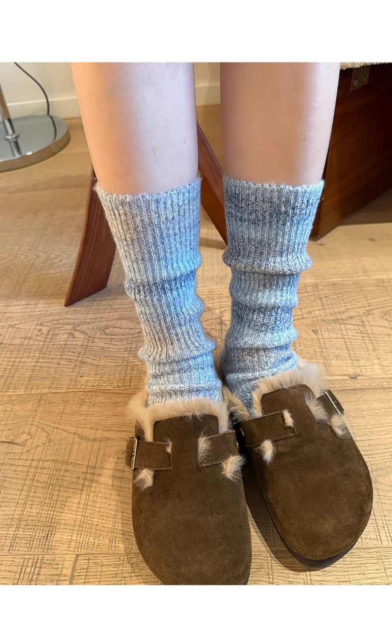 个性渐变色袜子女中筒袜加厚保暖秋冬季绒绒袜堆堆袜长ins潮韩版