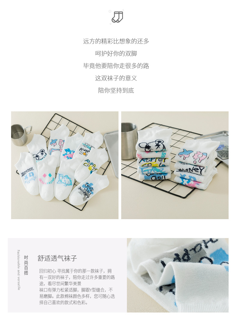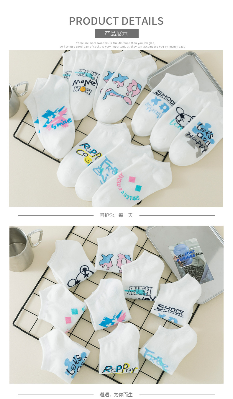 跨境袜子女新款可爱卡通韩版白色搞怪系列女船袜吸汗透气袜子批发