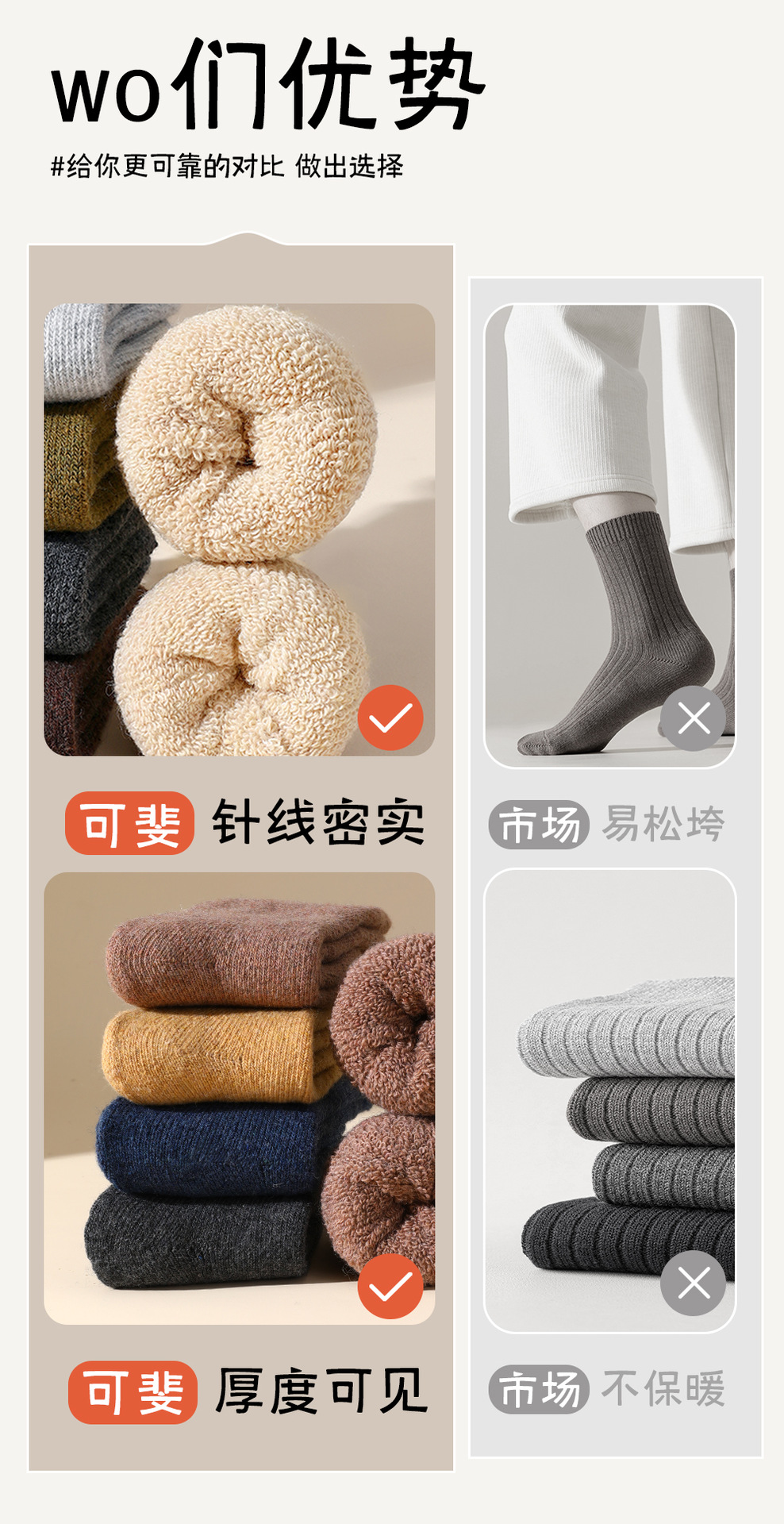 羊毛袜子女男秋冬加绒加厚毛圈中筒袜女士保暖袜超厚毛绒地板袜子
