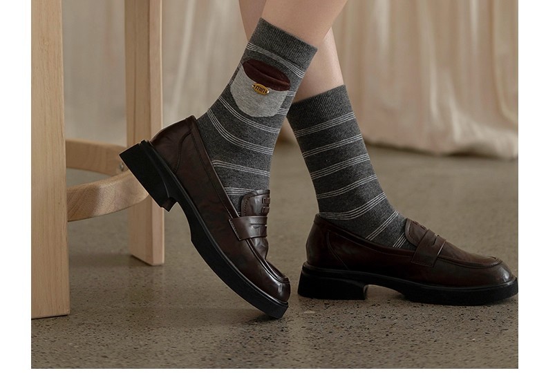 开学学院风袜子女春秋薄款棉袜2025新款条纹miu系中筒堆堆袜纯棉
