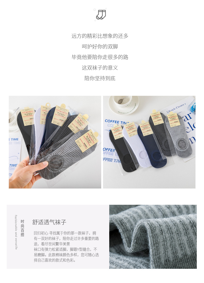 隐形袜新款男袜低帮浅口短袜纯色条纹休闲船袜独立包装商务袜批发