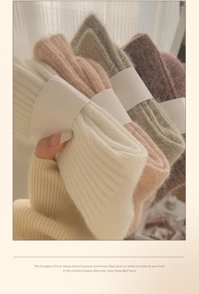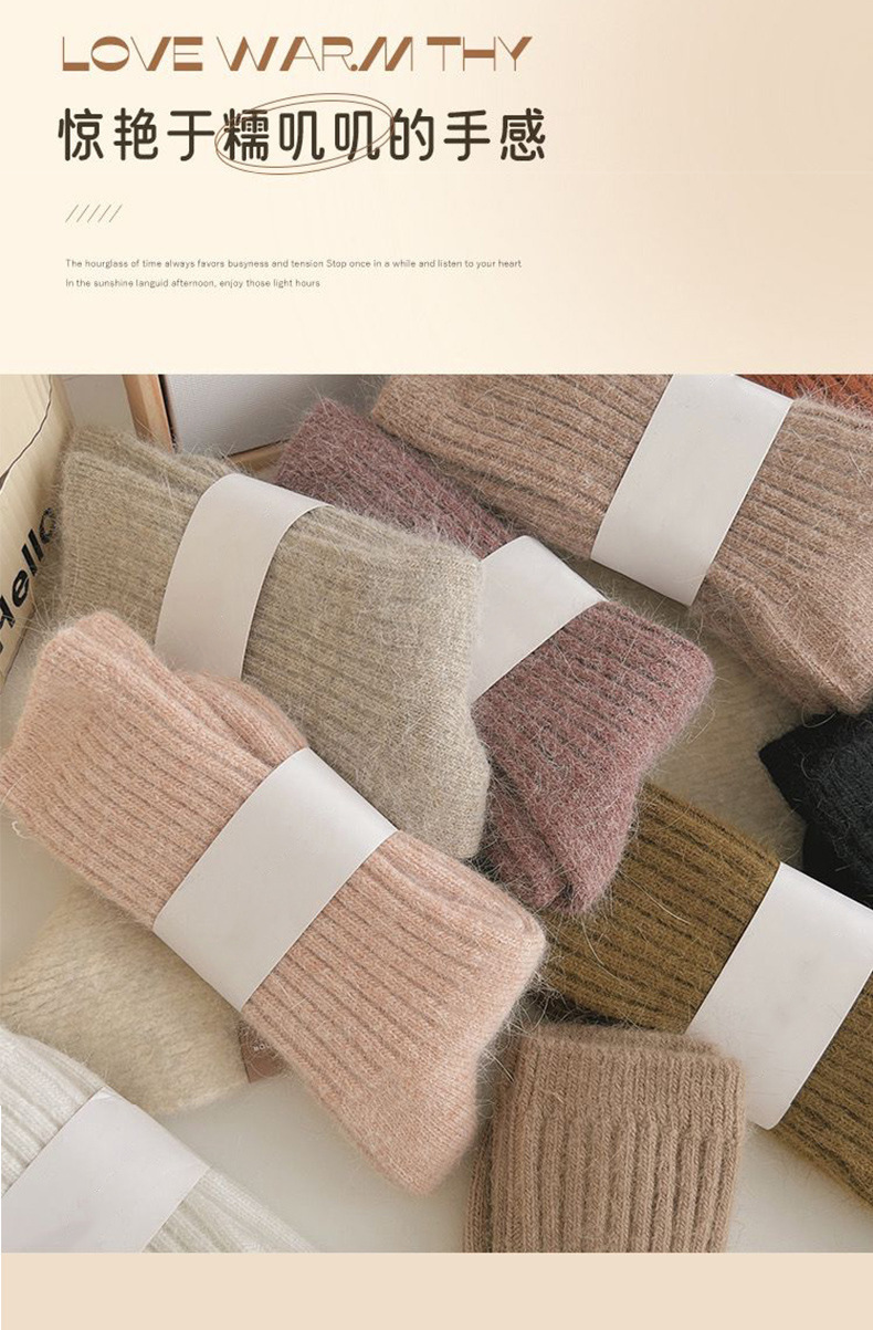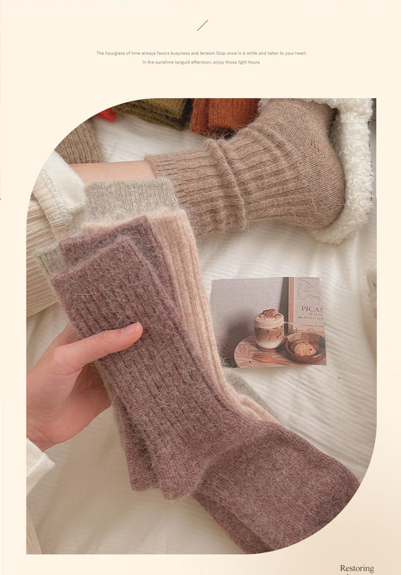 袜子女冬季中筒袜加绒加厚保暖袜柔软竖纹纯色日系长袜睡眠居家袜