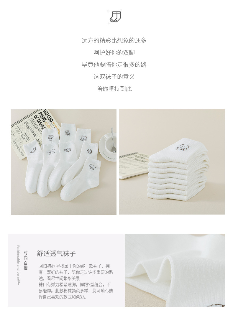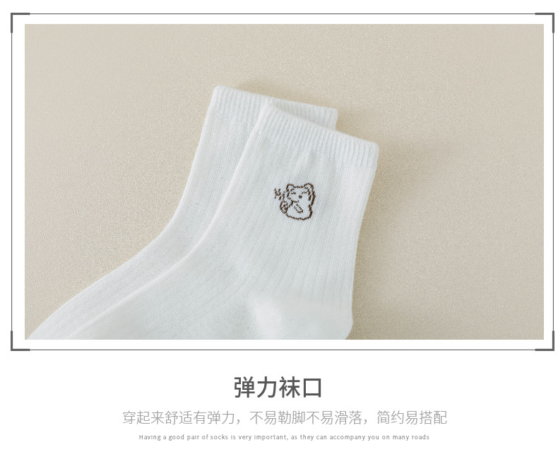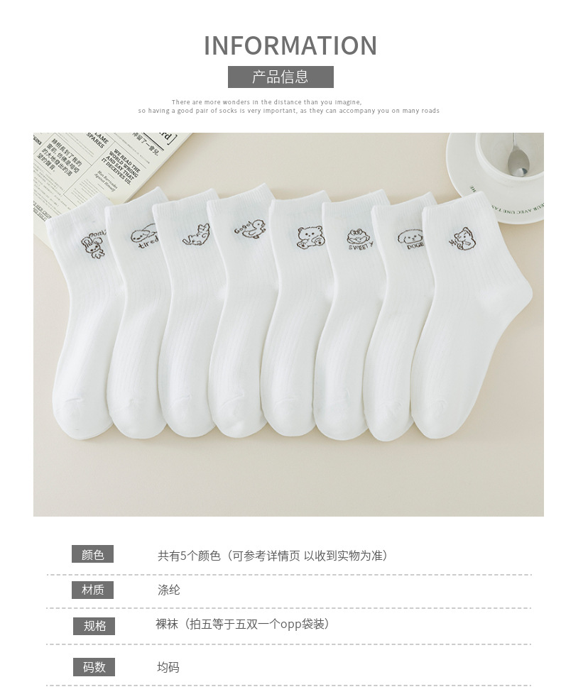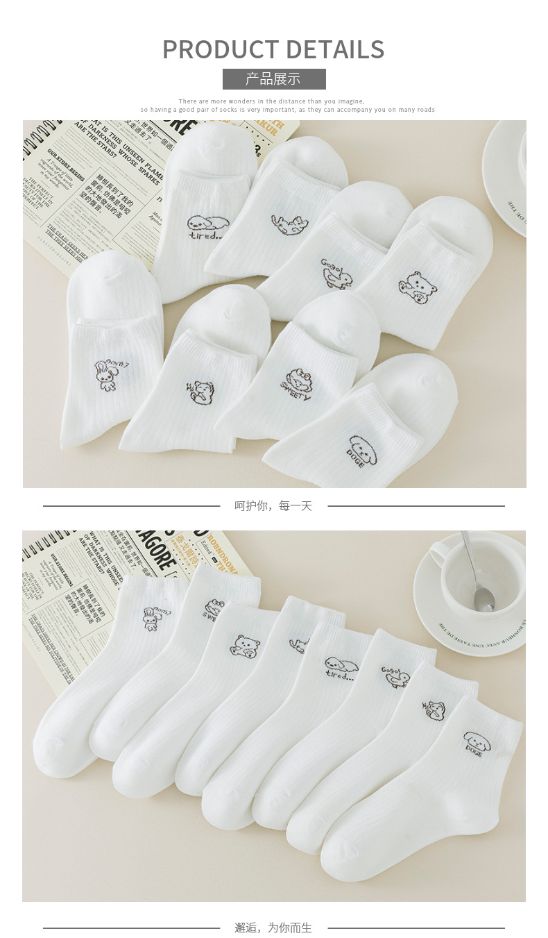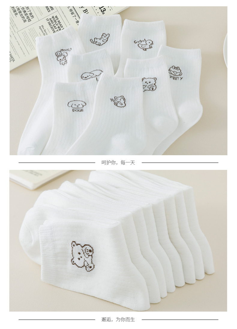 跨境袜子女24秋季新款百搭学院风白色卡通中筒袜吸汗透气袜子批发