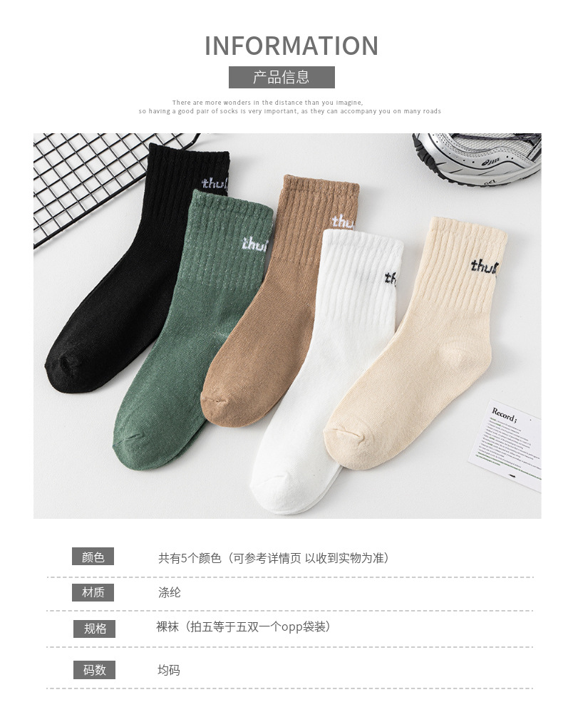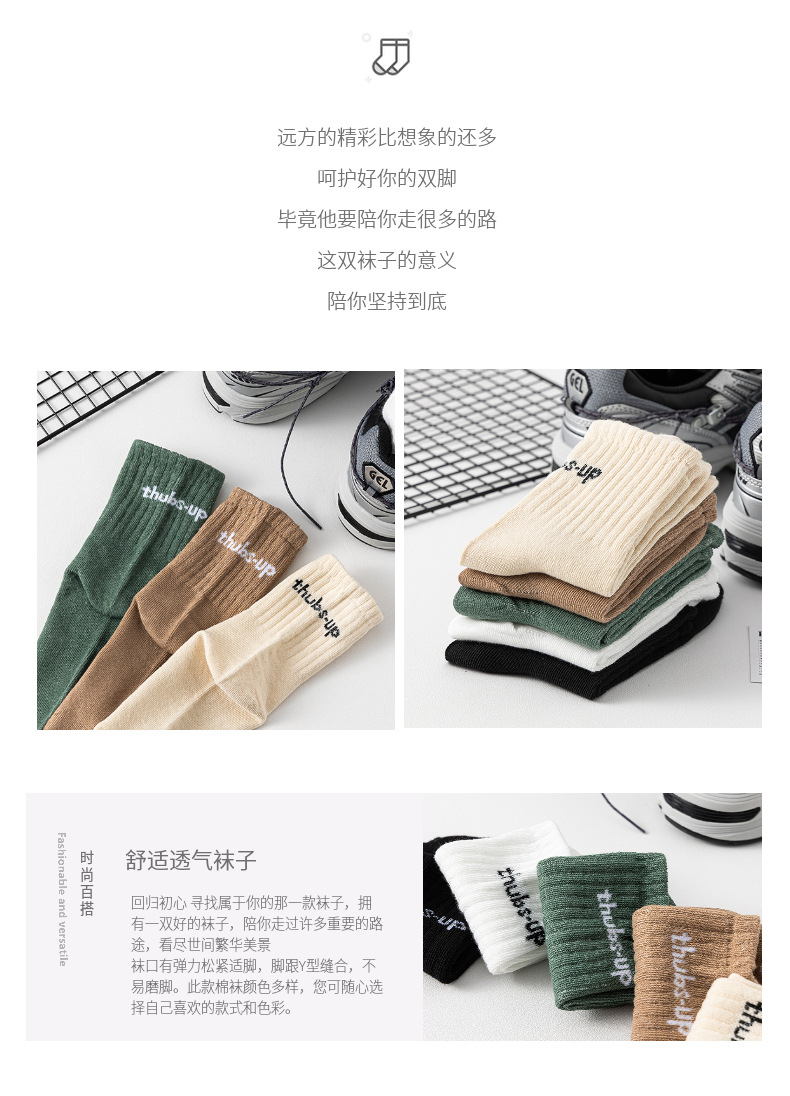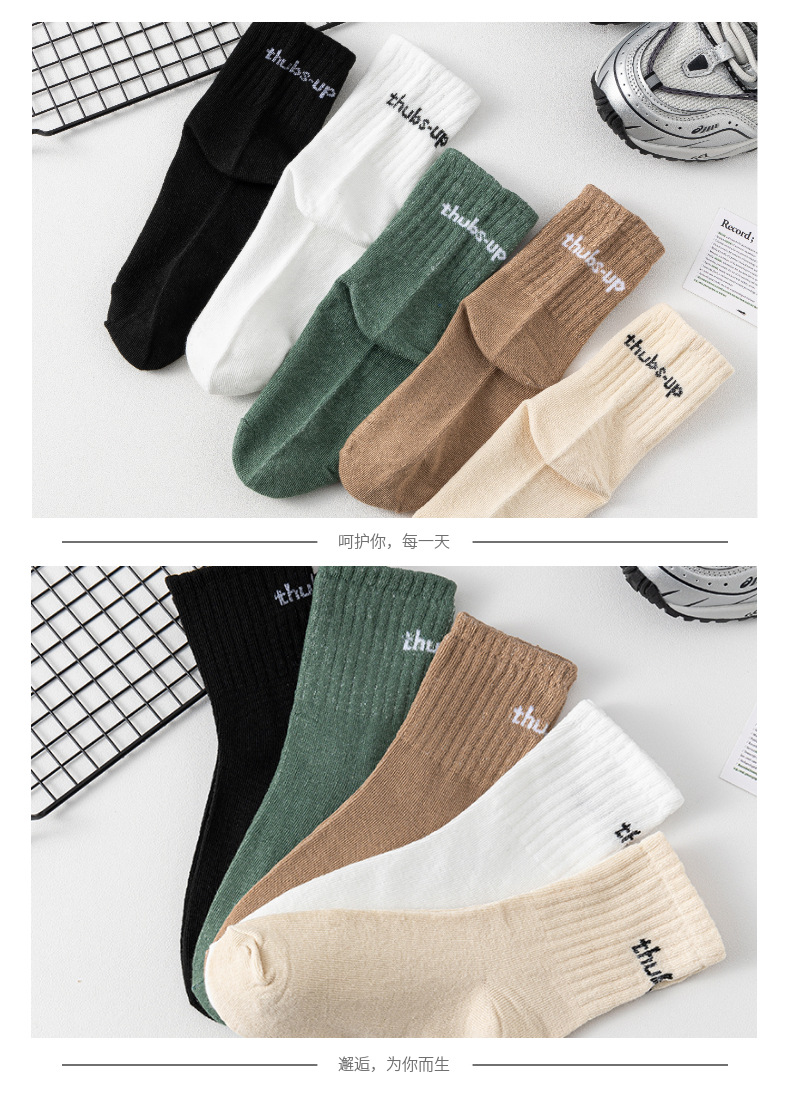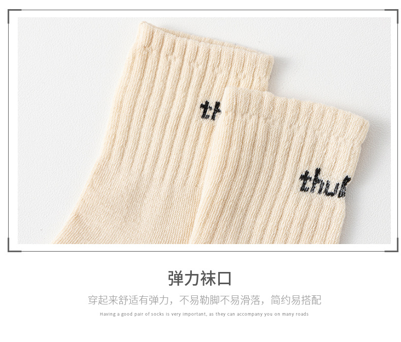 跨境袜子女24秋季新款潮流条纹后跟字母中筒袜字吸汗透气袜子批发