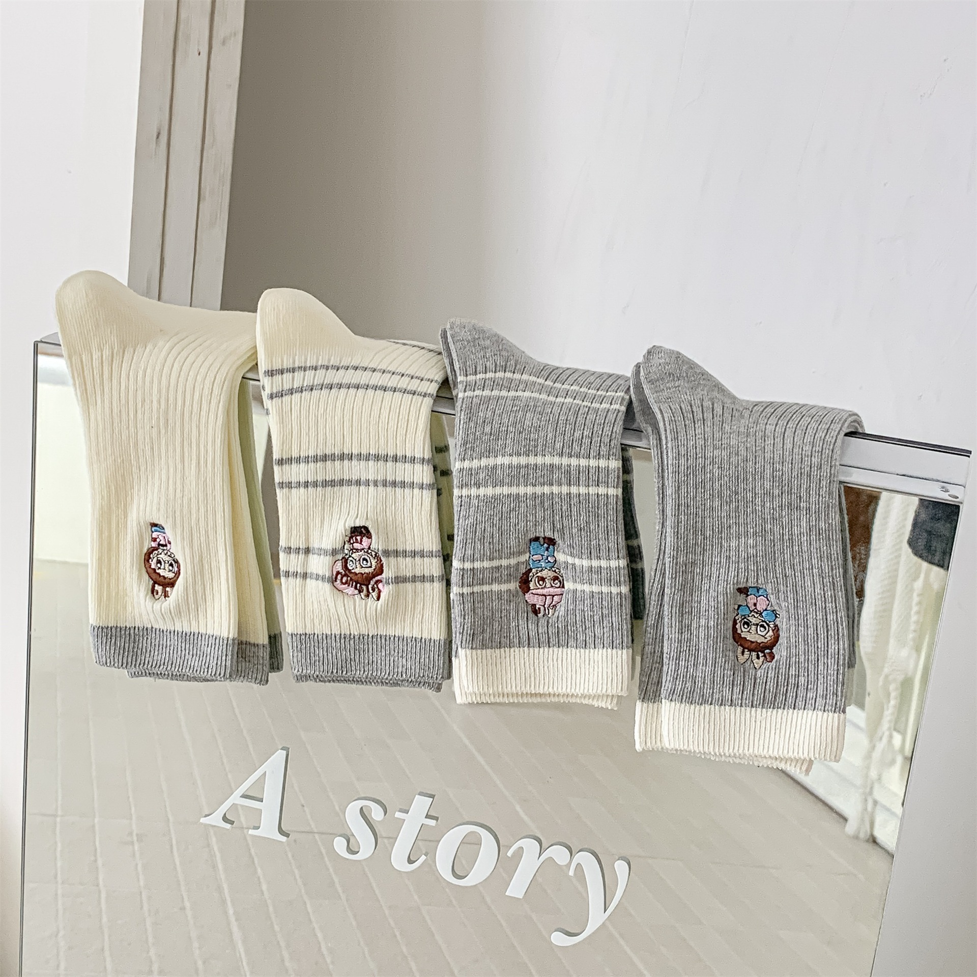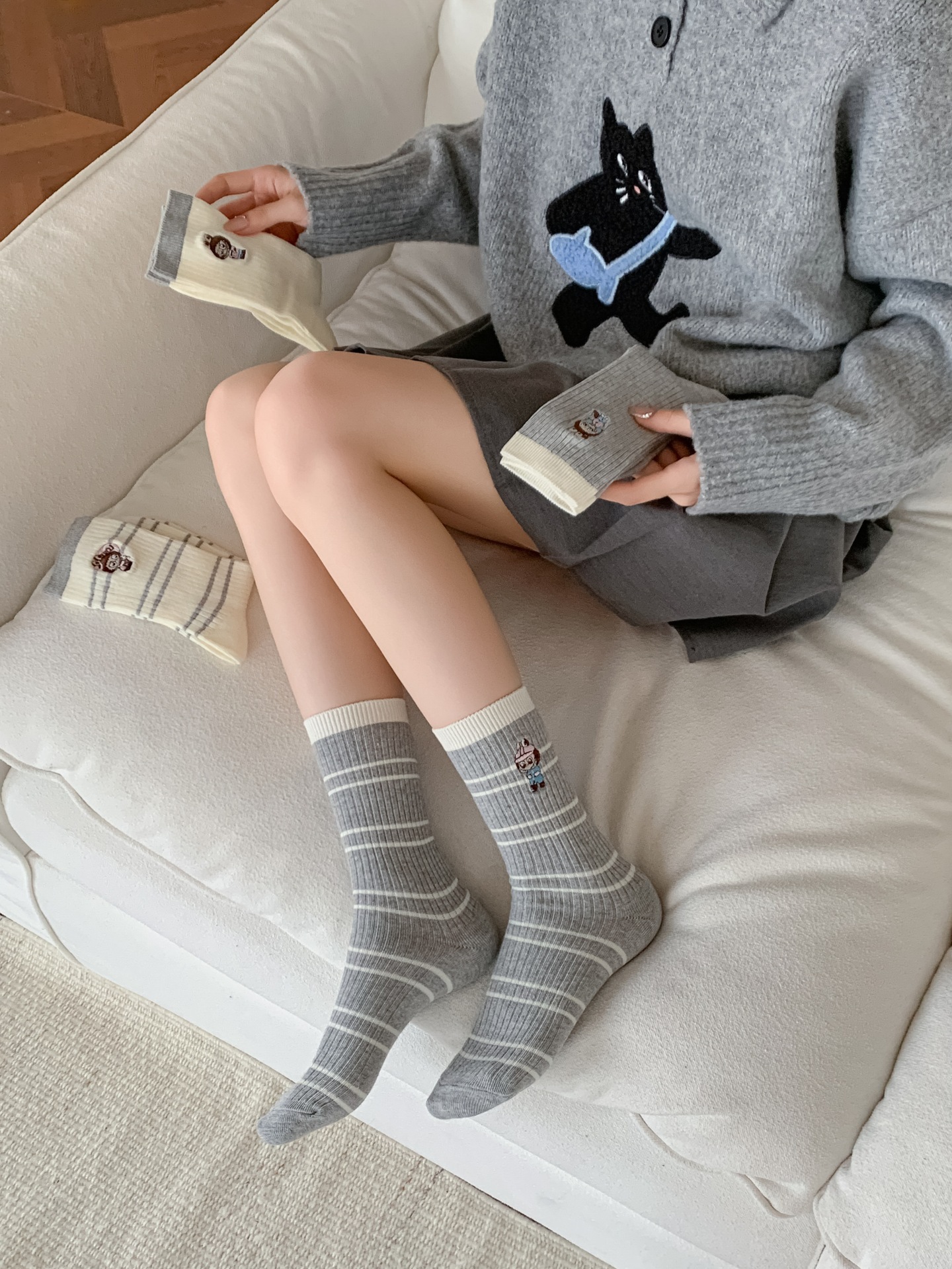 秋冬新品袜子女灰色日系ins卡通棉中筒袜可爱四季韩版学院风女袜