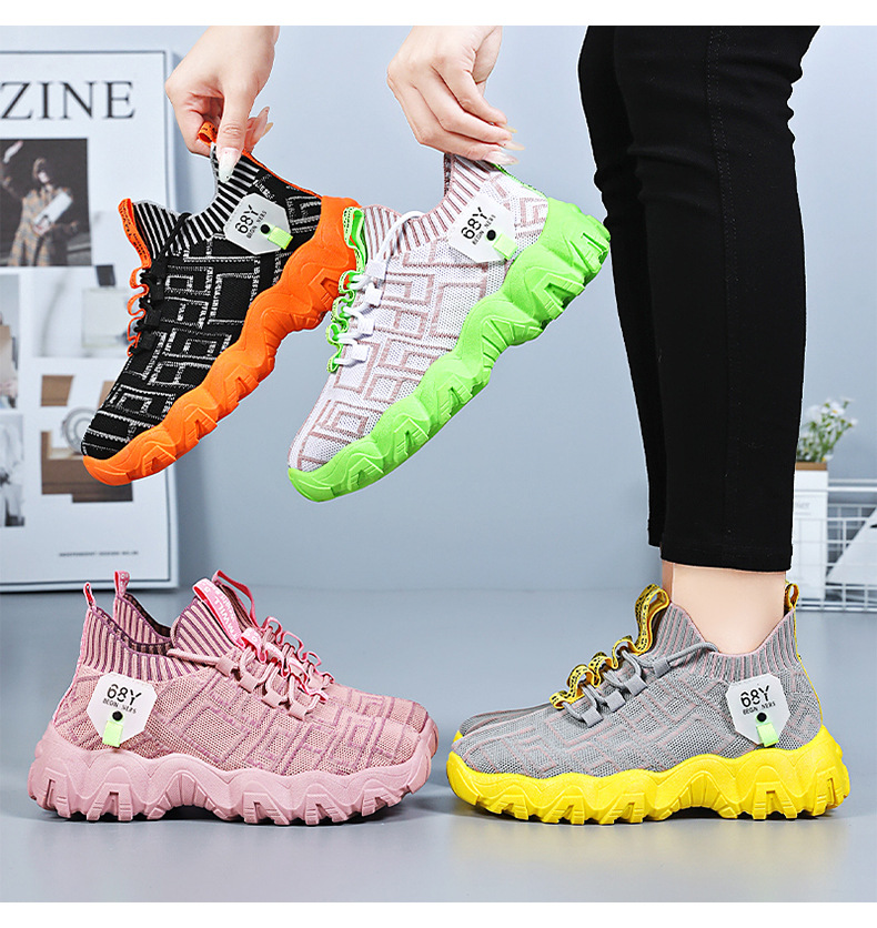 跨境运动鞋女夏季新款透气网面一脚蹬懒人椰子鞋外贸飞织袜子鞋