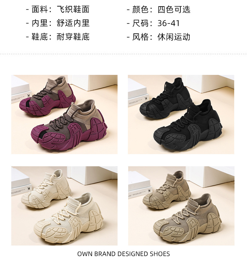 鞋子女夏季新款潮流时尚复古运动鞋飞织百搭休闲鞋厚底大码女鞋