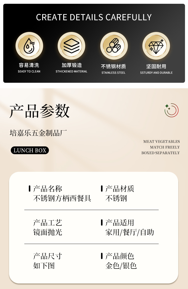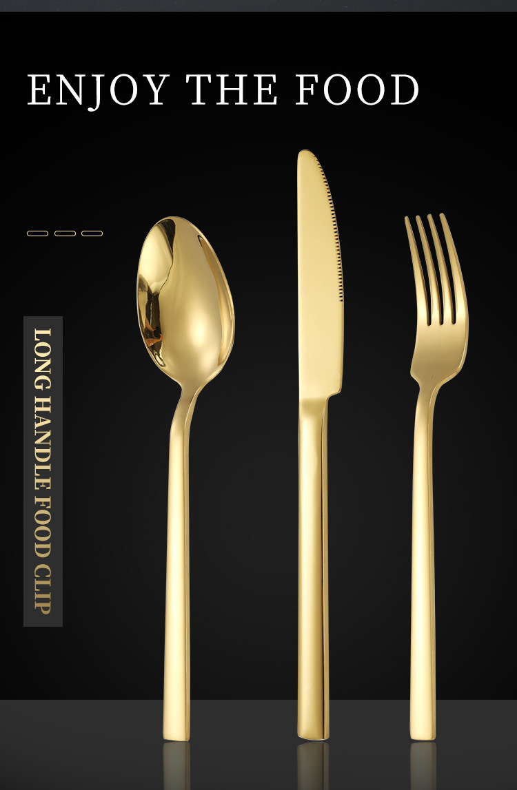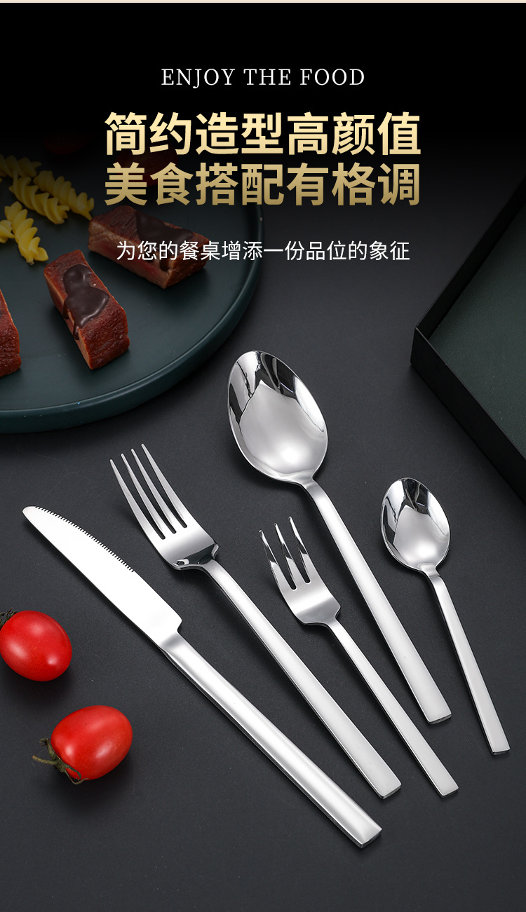 不锈钢方柄牛排刀叉勺子餐具套装酒店家用亚马逊西餐刀叉甜品叉勺