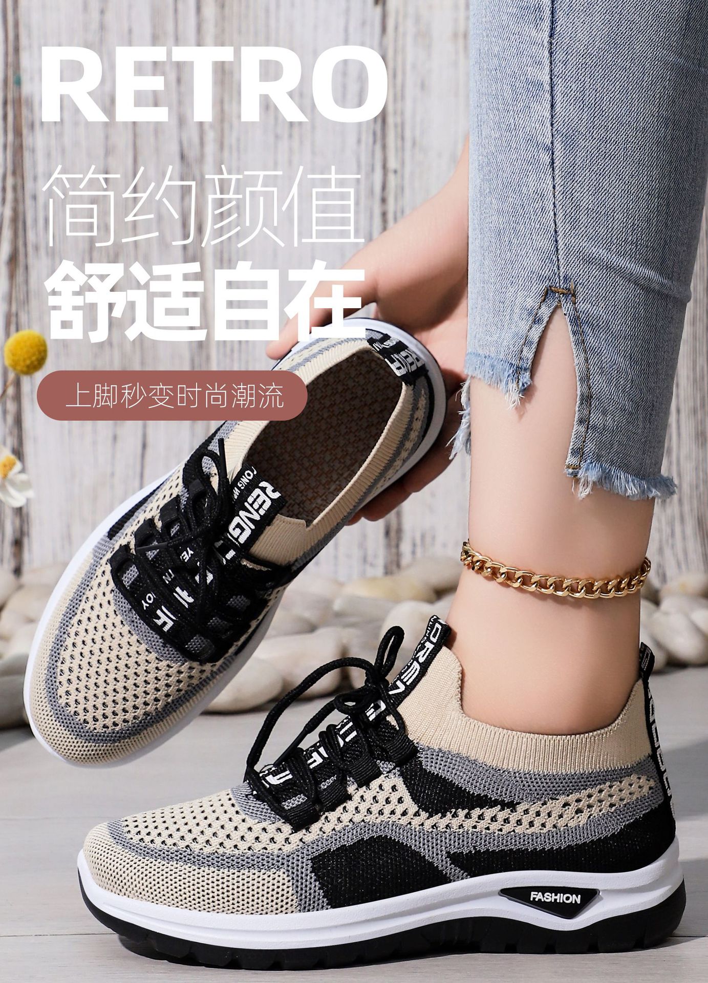 鞋子女鞋百搭新款运动鞋网面透气休闲单鞋跨境软底舒适系带跑步鞋