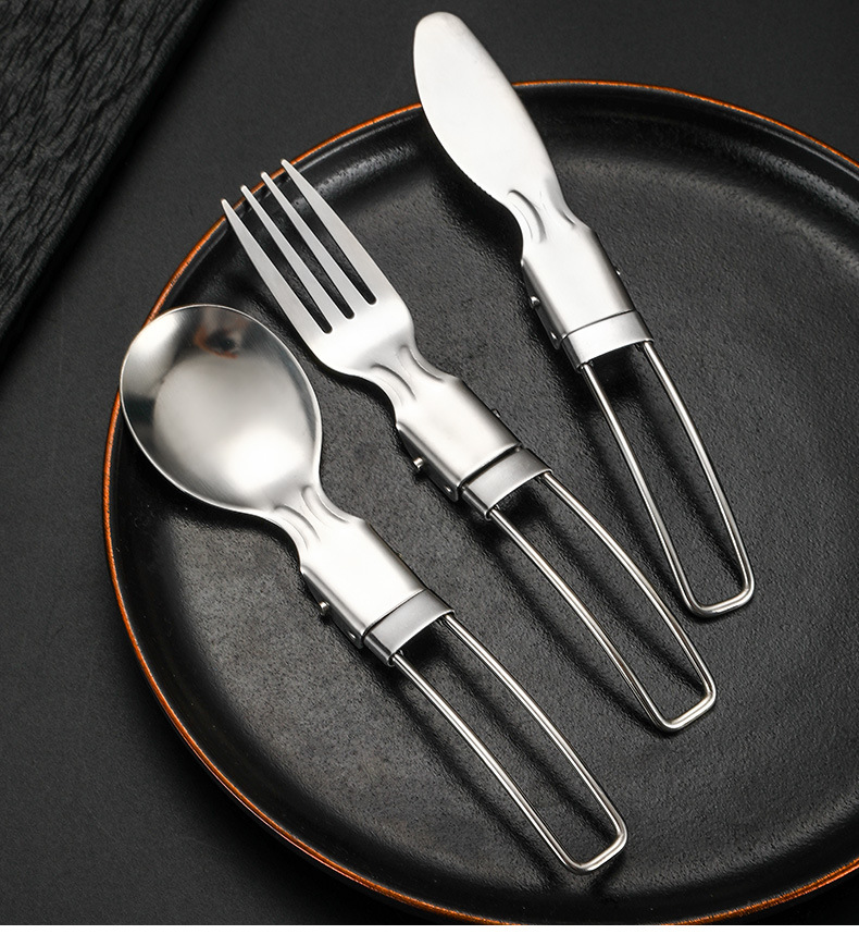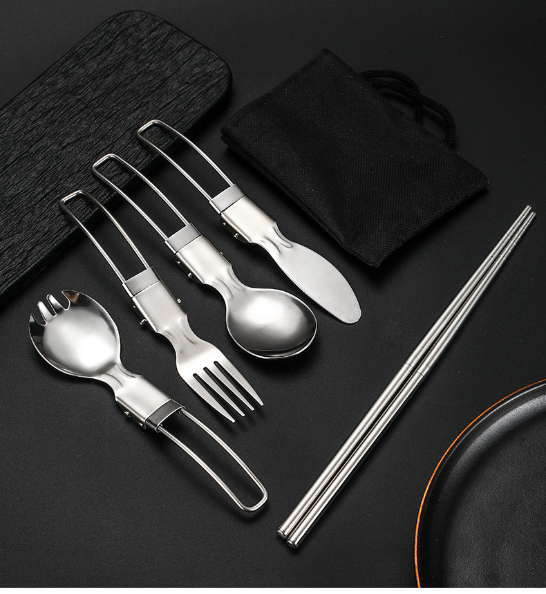 亚马逊304不锈钢折叠餐具套装刀叉勺筷子旅行便携式野餐跨境餐具