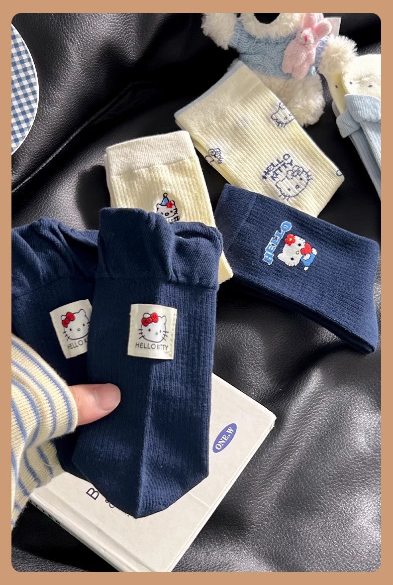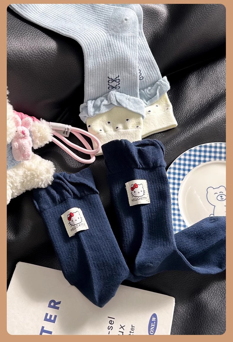 诸暨袜业春秋季蓝色可爱卡通袜子女中筒袜ins潮百搭外穿学生长袜