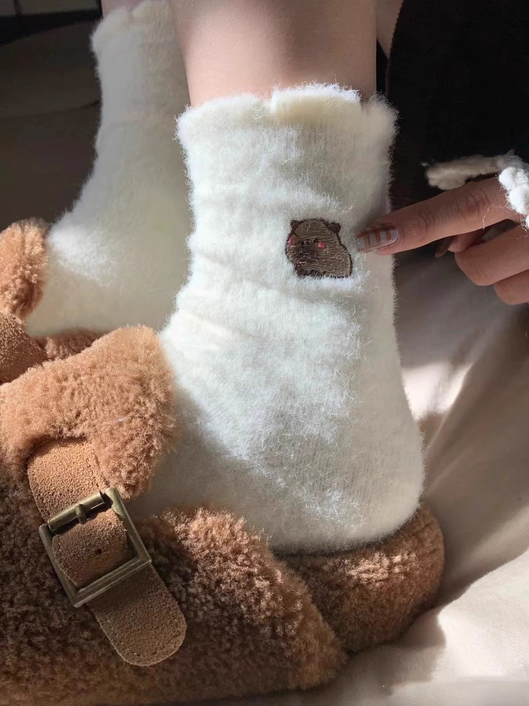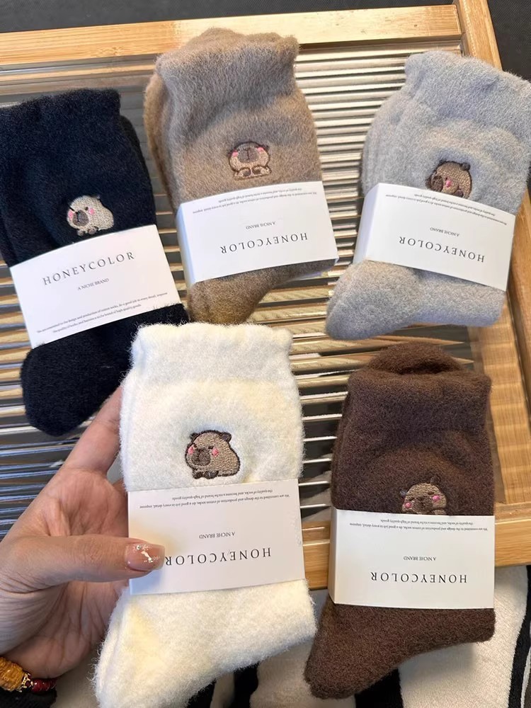 秋冬新款可爱卡皮巴拉加厚保暖居家地板袜个性休闲潮袜舒适睡眠袜