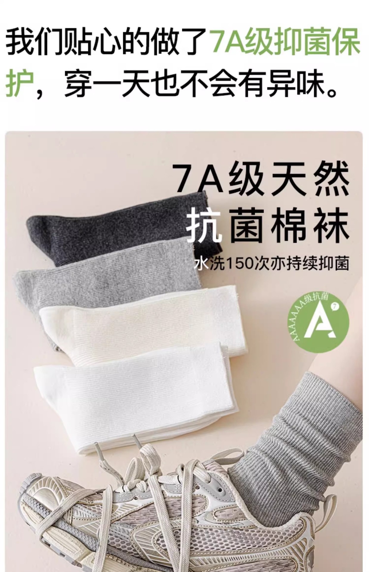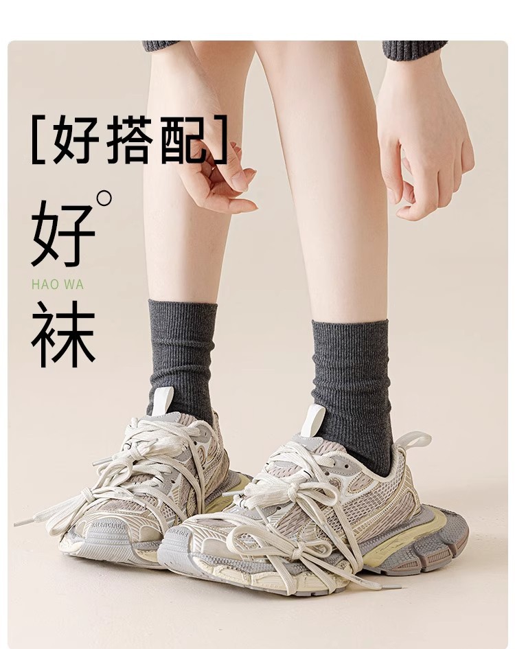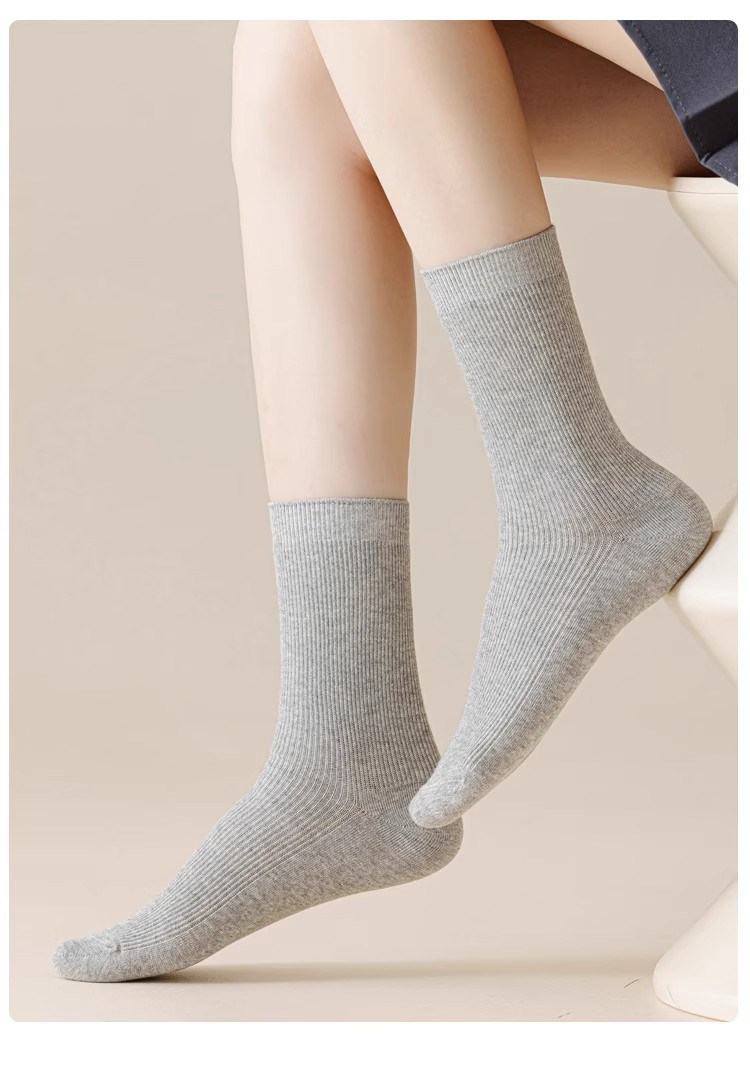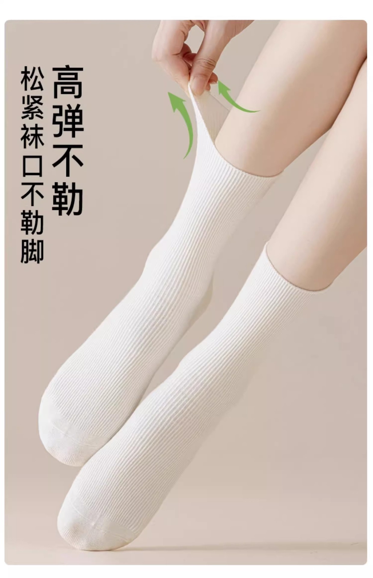白色袜子女春秋款中筒袜纯棉配勃肯鞋无骨月子袜秋冬季灰色堆堆袜