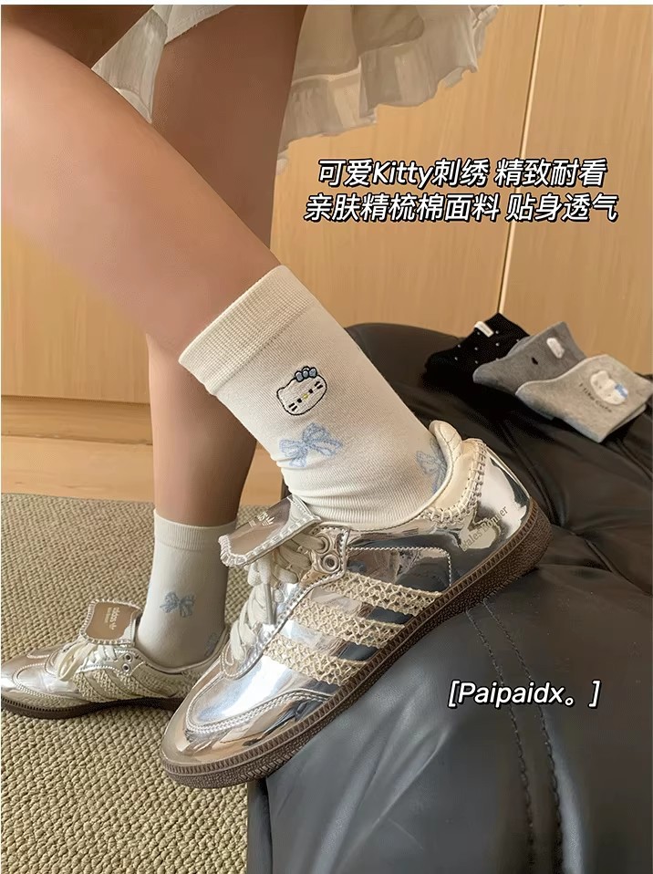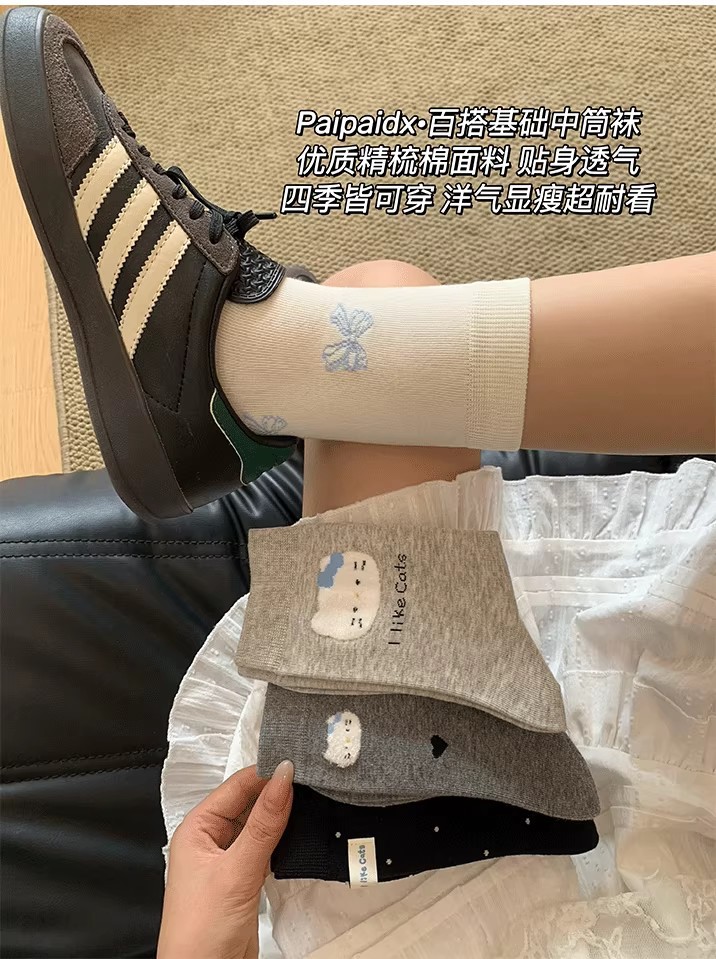 袜子女2025新款爆款卡通小猫爱心蝴蝶结刺绣中筒袜堆堆袜可爱棉袜