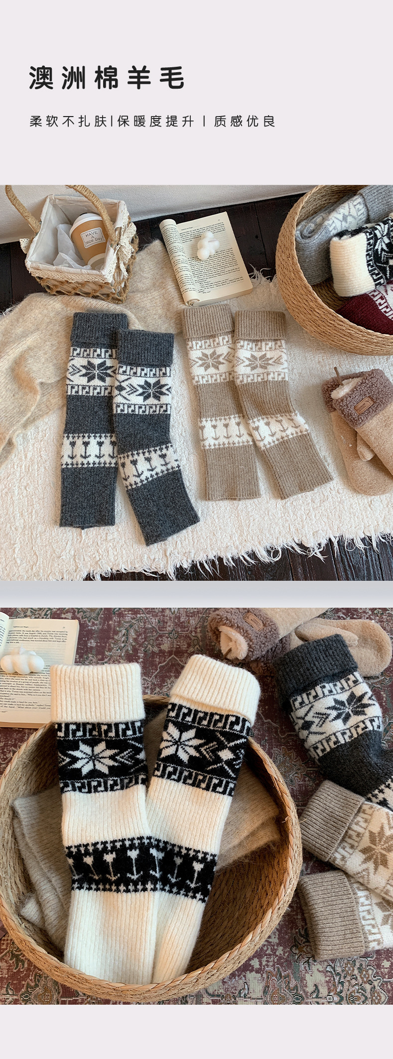 羊毛袜套女秋冬季保暖加厚民族风针织翻边小腿套复古雪花堆堆袜套