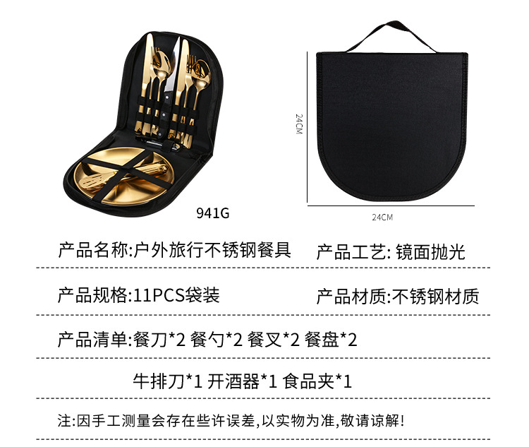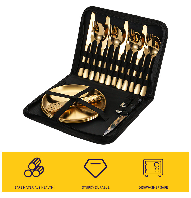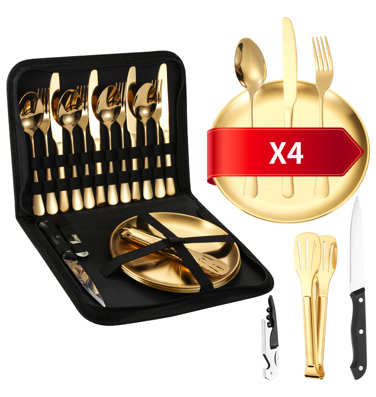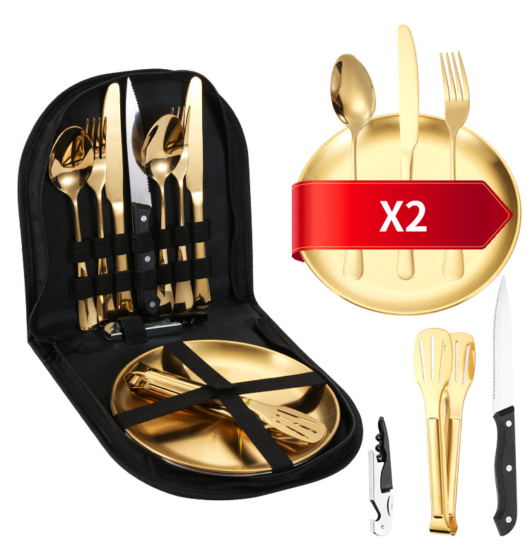 跨境不锈钢餐具套装露营野餐烤肉户外餐具野营野炊牛排刀叉勺套装