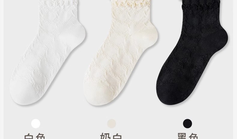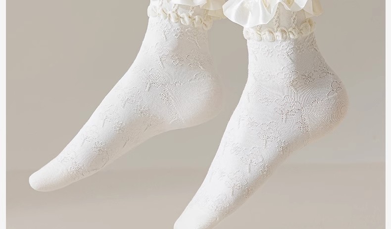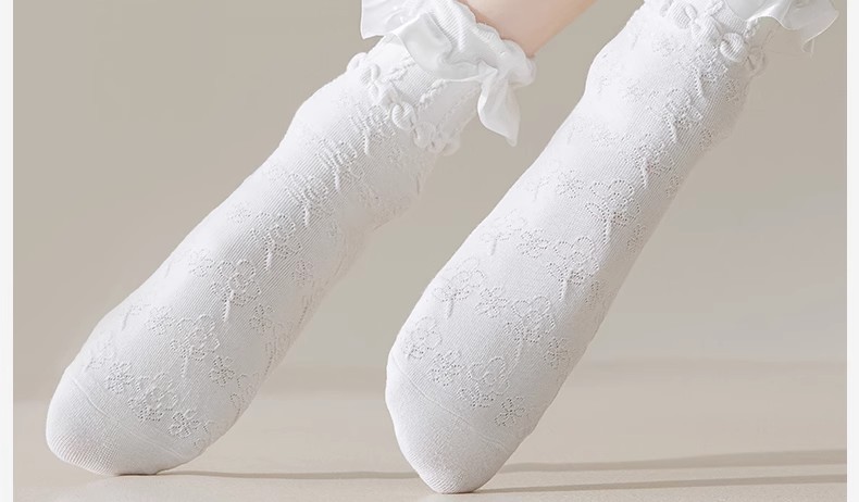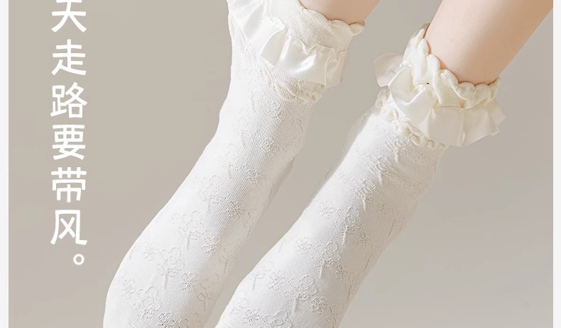 白色蕾丝花边袜子女春秋可爱中筒日系Lolita蕾丝袜jk袜洛丽塔纯色