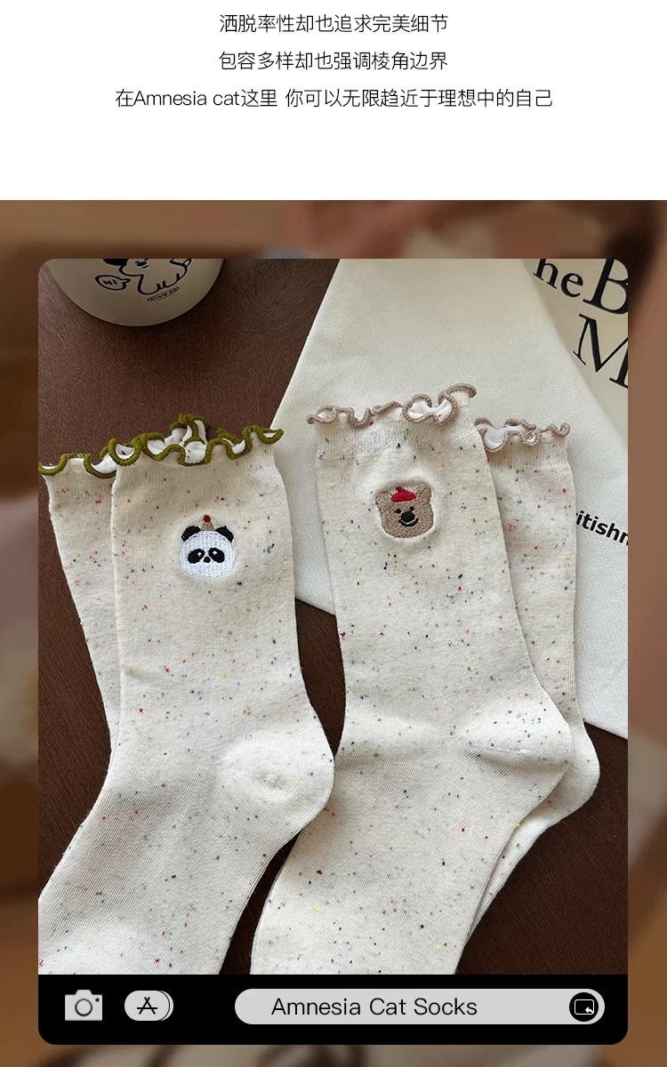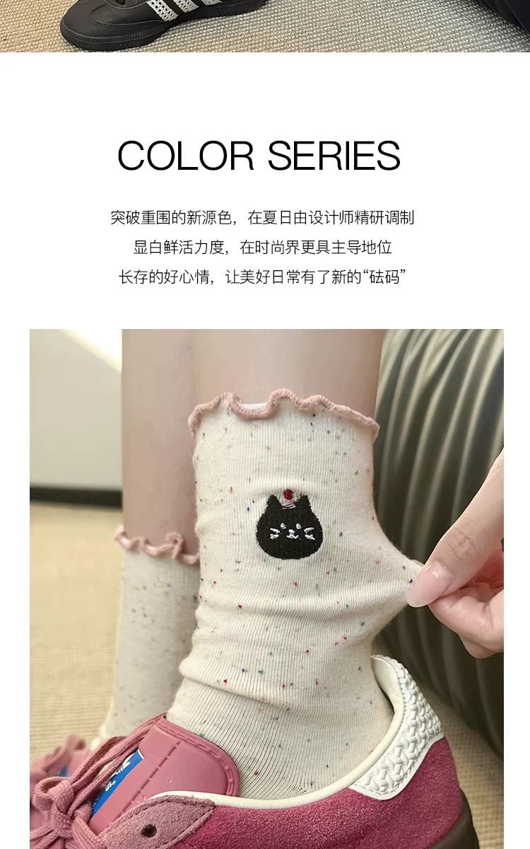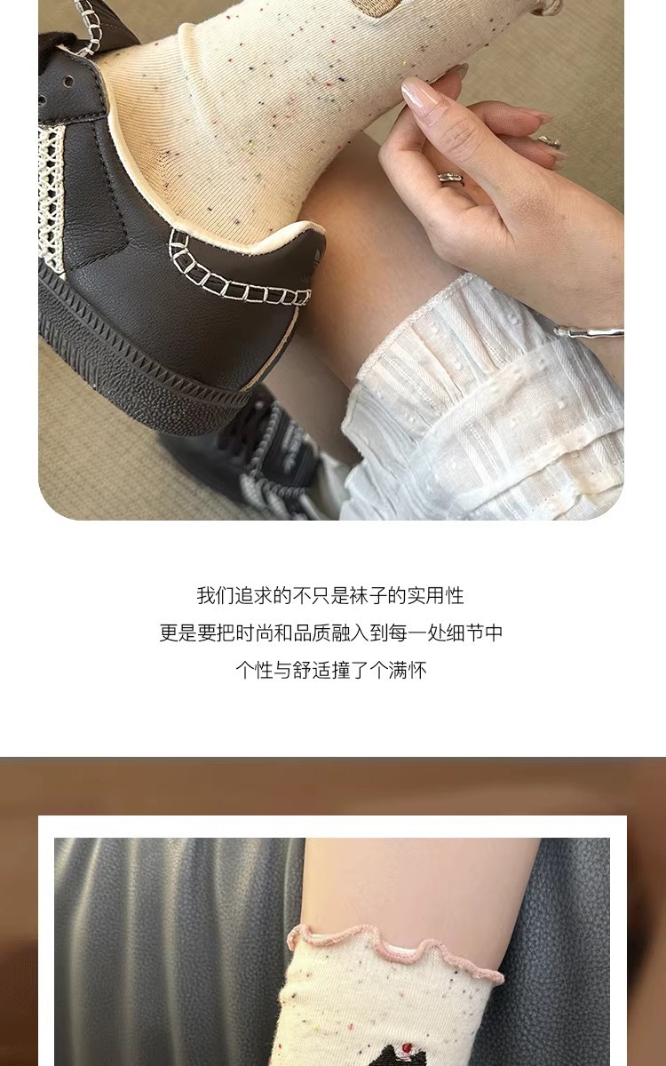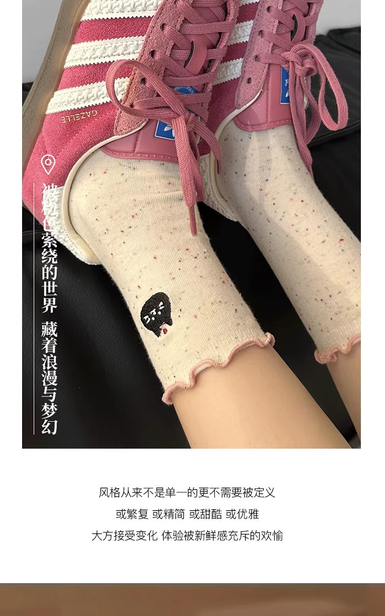 袜子女春秋可爱中筒袜纯棉高筒外穿ins潮网红长袜女木耳边堆堆袜