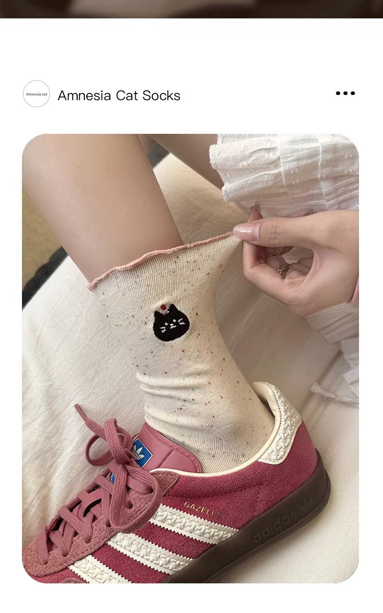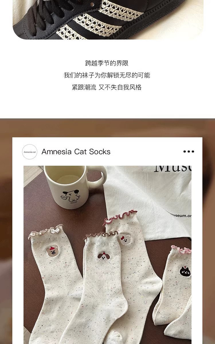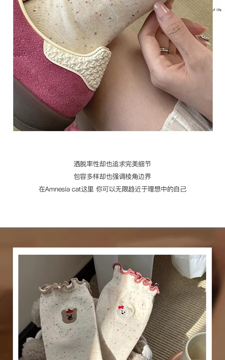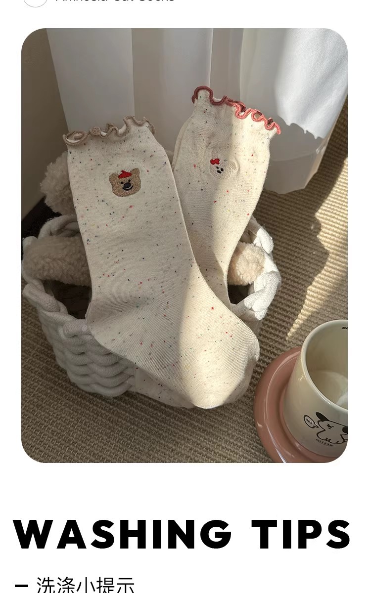袜子女春秋可爱中筒袜纯棉高筒外穿ins潮网红长袜女木耳边堆堆袜