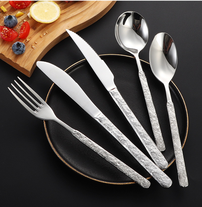 不锈钢餐具套装304不锈钢餐具餐具ins风创意石纹刀叉勺不锈钢餐具