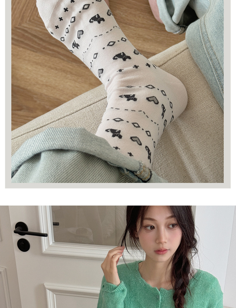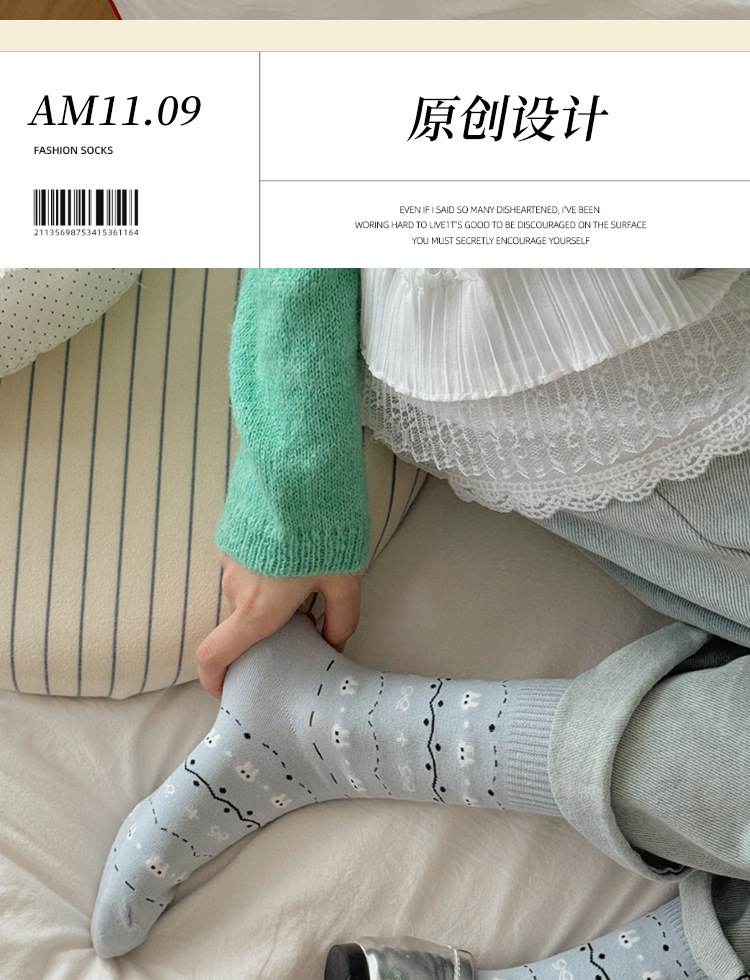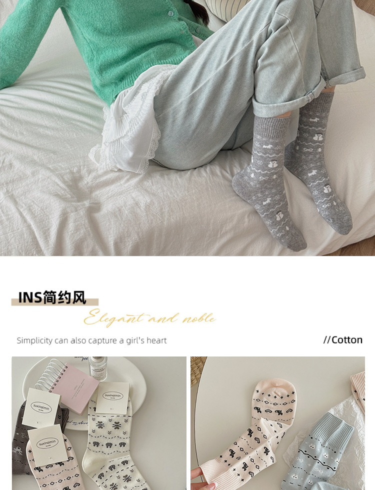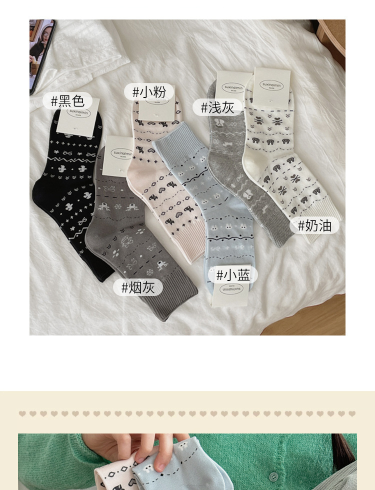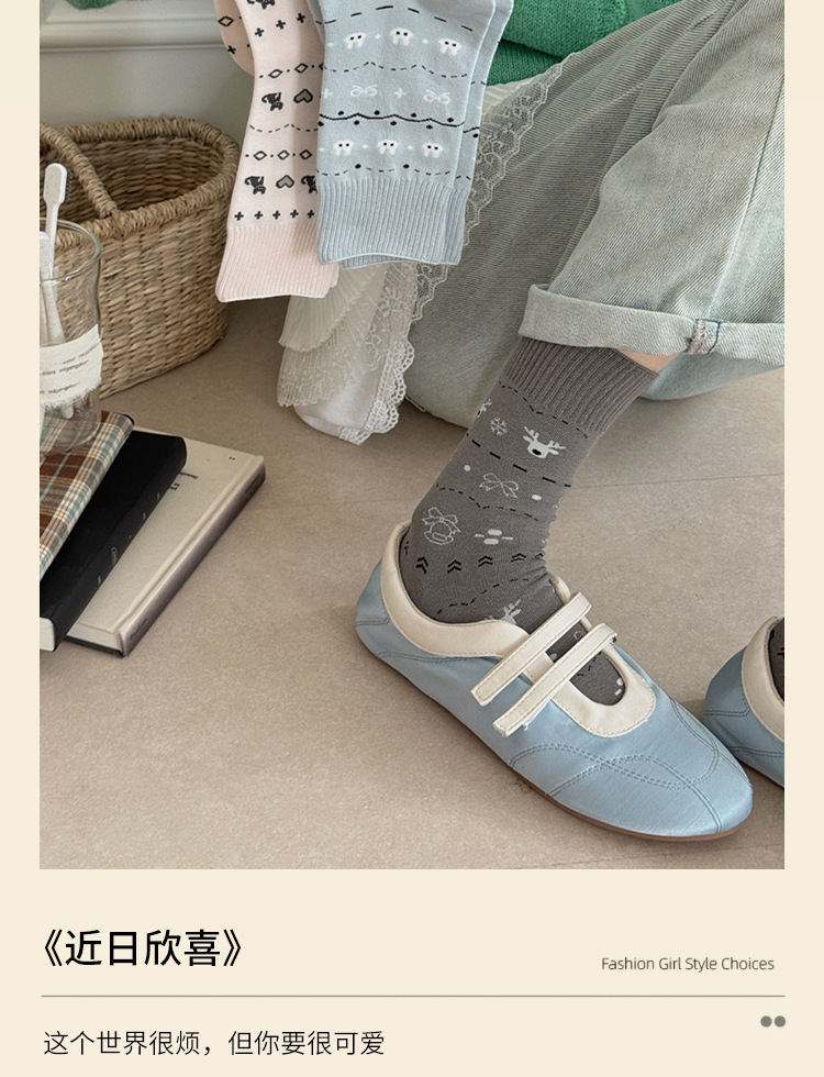 袜子女文艺复古费尔岛爱心韩系学院风可爱中筒堆堆袜子韩系学院风