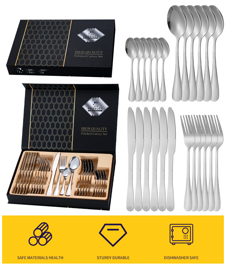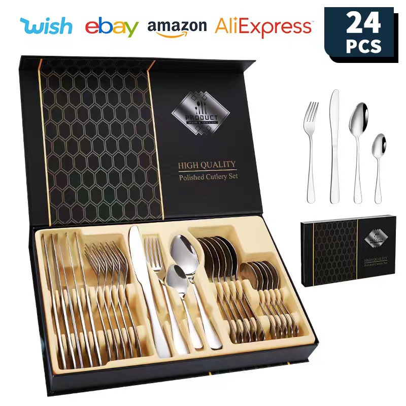 跨境亚马逊1010不锈钢餐具24件套礼盒套装西餐牛排刀叉勺餐具套装